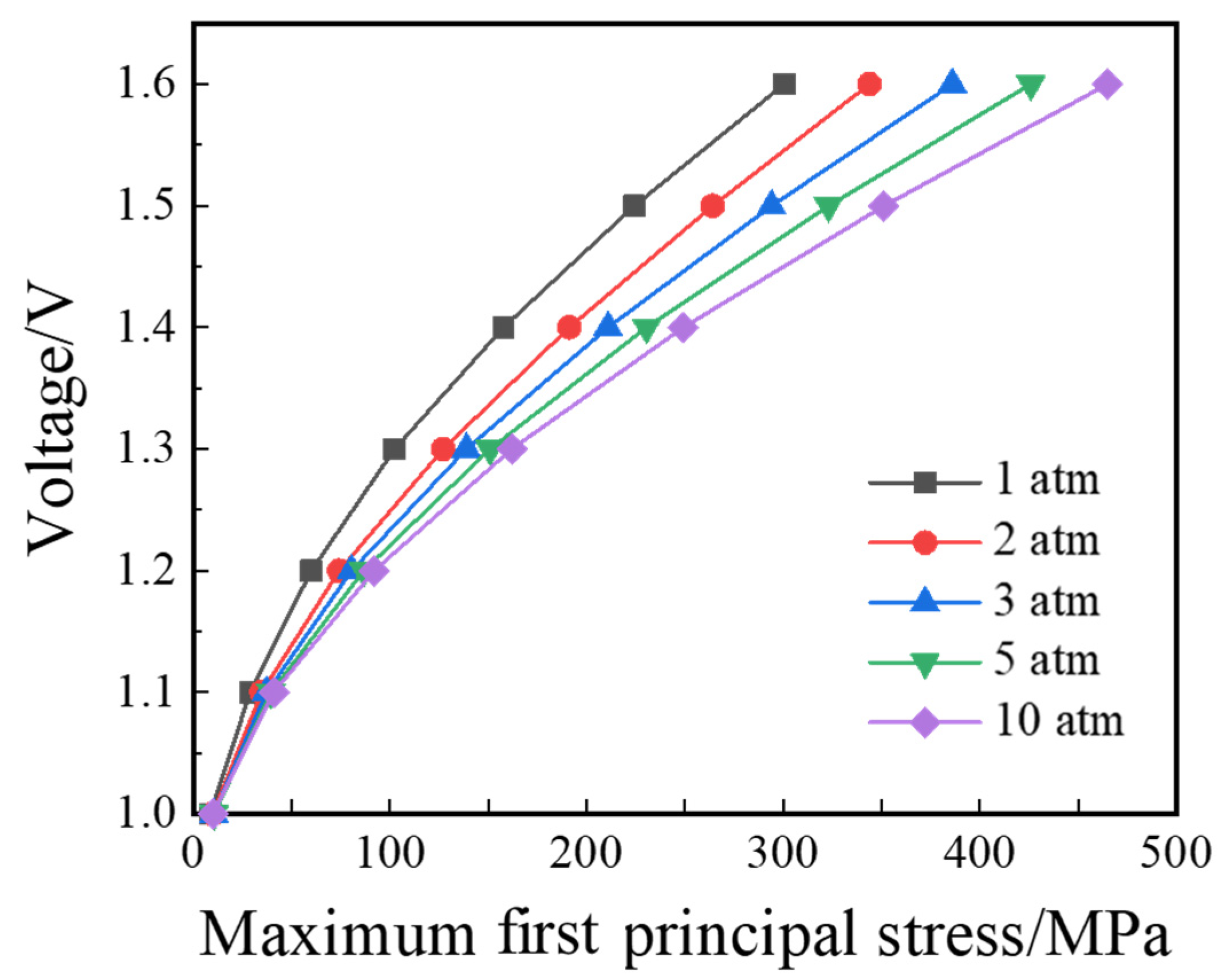 - Cui, T.; Xiao, G.; Yan, H.; Zhang, Y.; Wang, J.-Q. Numerical simulation and analysis of the thermal stresses of a planar solid oxide electrolysis cell. Int. J. Green Energy 2023, 20, 432–444. [Google Scholar] [CrossRef]