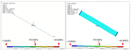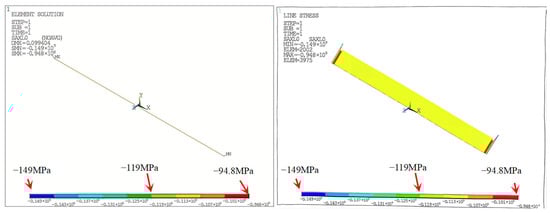 This section aims to validate the accuracy of the finite element model by comparing theoretical calculations and numerical simulations of axial stress and axial displacement. Two representative PIP systems of different lengths—11,000 m (long pipeline) and 6000 m (short pipeline)—are analyzed, each under different end anchoring conditions.