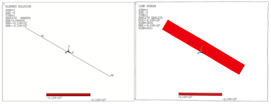 The numerical results for various mesh densities are presented in Table 1, where the element dimensions range from 200 × 2 mm in the coarsest configuration to 0.1 × 0.1 mm in the finest configuration. The corresponding maximum stresses decreased monotonically from 245 MPa for the coarsest mesh to 190 MPa at an element size of 10 × 0.75 mm, indicating a significant reduction in numerical error with progressive refinement.