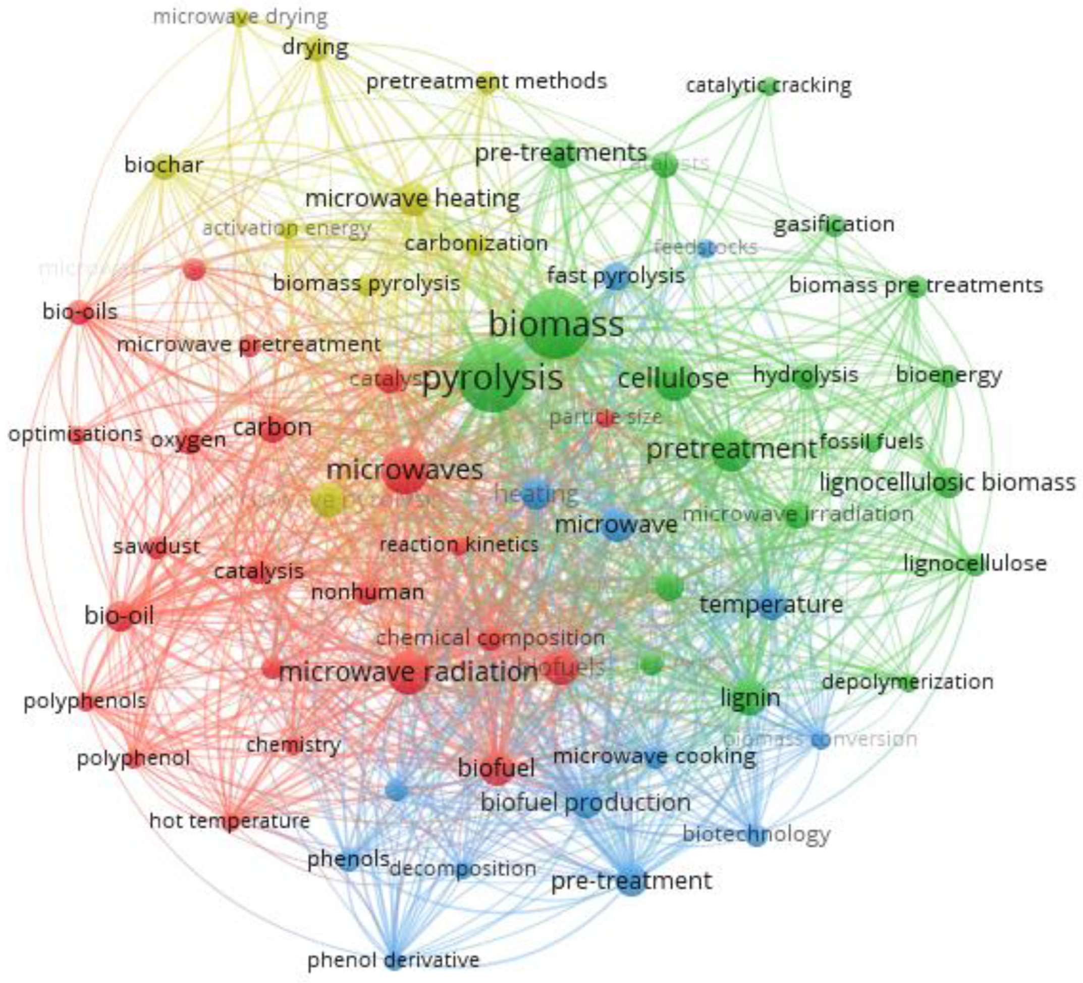 - RQ4: What were the most important advances and discoveries in the field of microwave-assisted biomass pretreatment prior to pyrolysis in the last five years?
