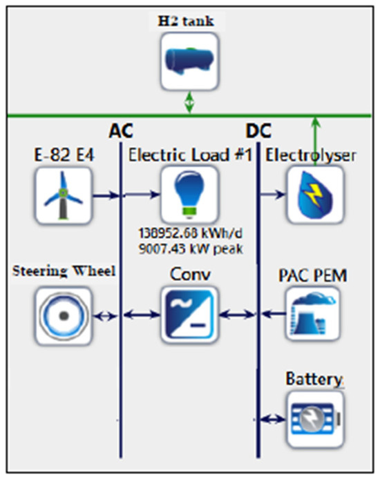 - Case 1: Use of PEMFC, with thermal demand aggregated into the electrical load under the assumption that 1 kWh of electricity can substitute 1 kWh of heat.