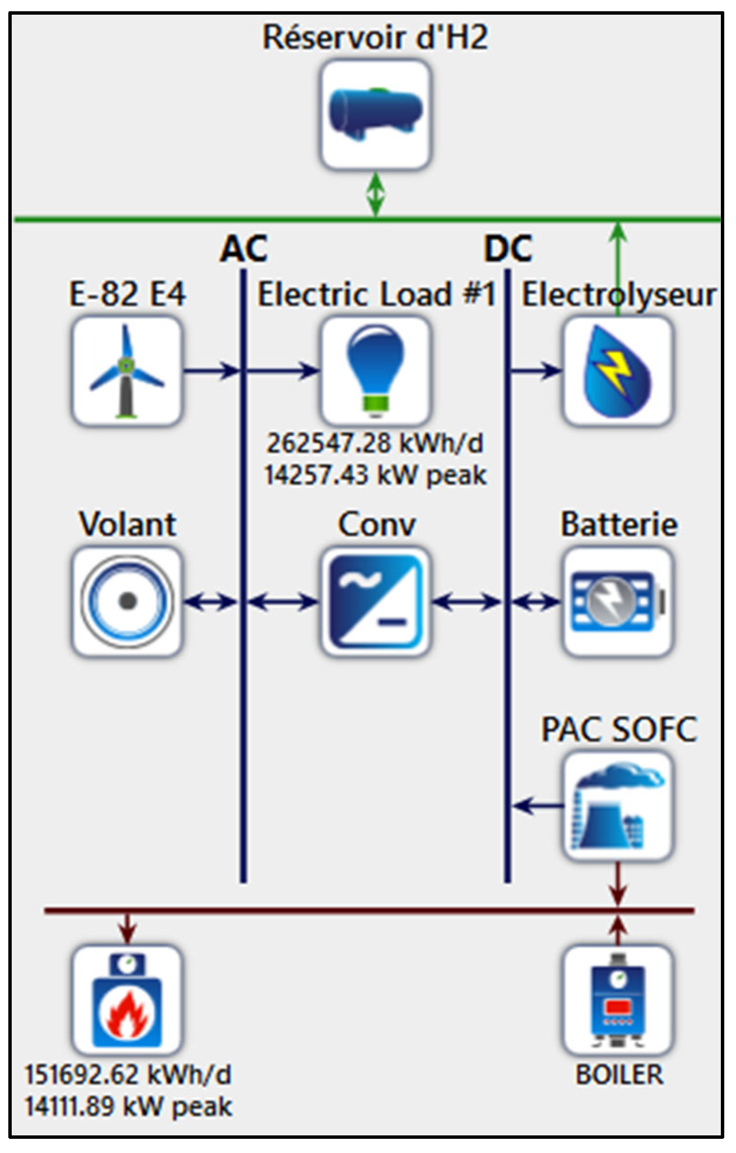 | Total CAPEX | 182.4 M$ (55% wind turbines, 33% H2 tank) |