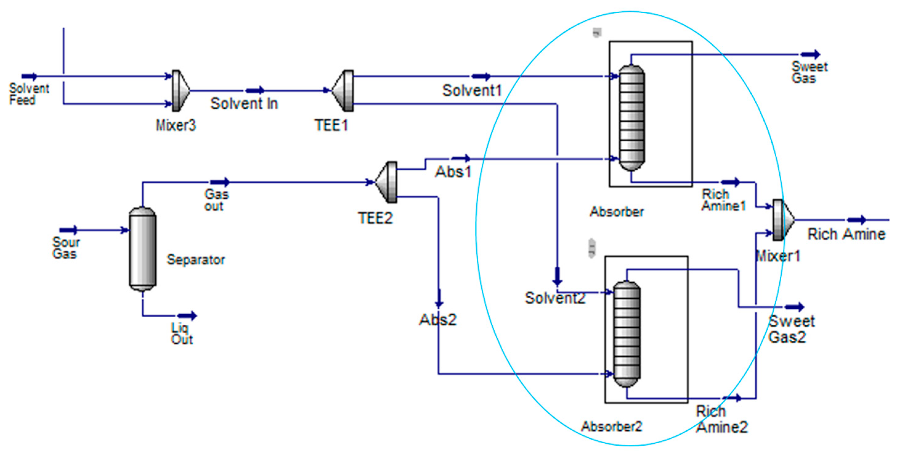 - Chew, Y.E.; Putra, Z.A.; Foo, D.C. Process simulation and optimisation for acid gas removal system in natural gas processing. J. Nat. Gas Sci. Eng. 2022, 107, 104764. [Google Scholar] [CrossRef]