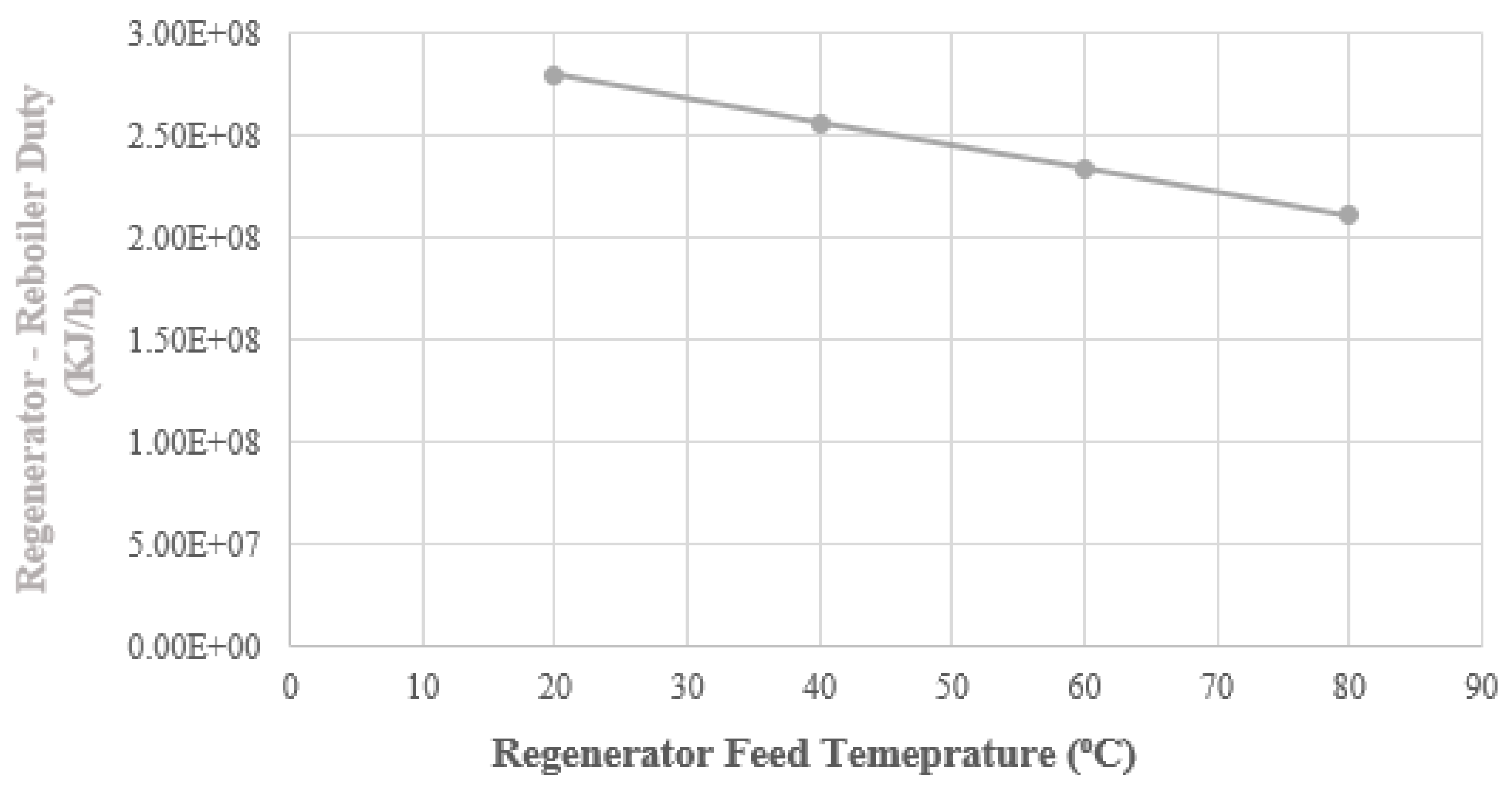 4.4. Effects of Regenerator Feed Temperature on Reboiler Duty