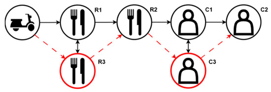 PDPTW has been extensively studied in the literature, and many application cases are still in the scope of researchers in different areas such as cold-chain transportation [1,2] and e-commerce last mile delivery operations [3,4], along with public transportation [5,6] and meal delivery routing [7,8]. In recent years, along with the effects of the global pandemic and remote-working, the OFD ecosystem has seen a meteoric rise in demand for meal delivery services. This has caught the attention of academia, resulting in an increase in the number of publications focusing on OFD problems by transforming the static PDPTW into OFD routing problem.