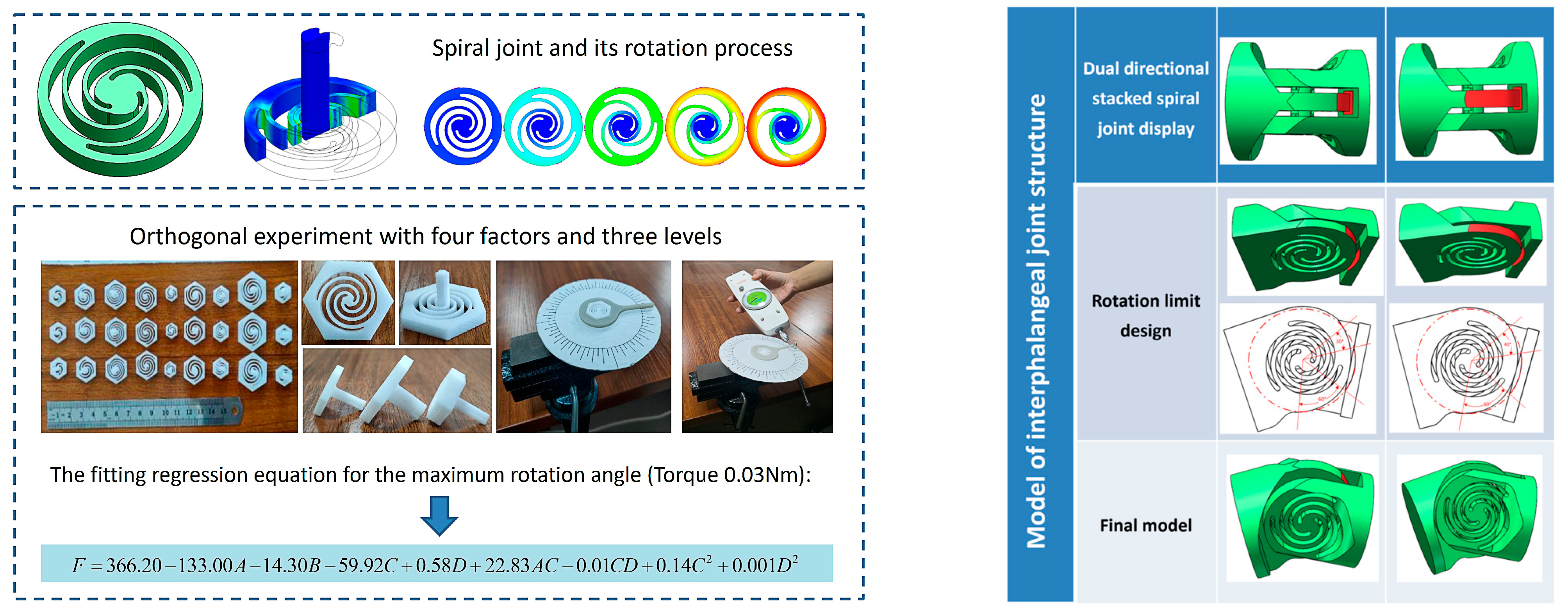 Higher integration of parts. The designed mechanical finger has undergone functional integration, using spiral joints instead of traditional motion pairs. It not only connects two independent finger joints into one for assembly-free manufacturing but also achieves customization of their relative rotation angles.