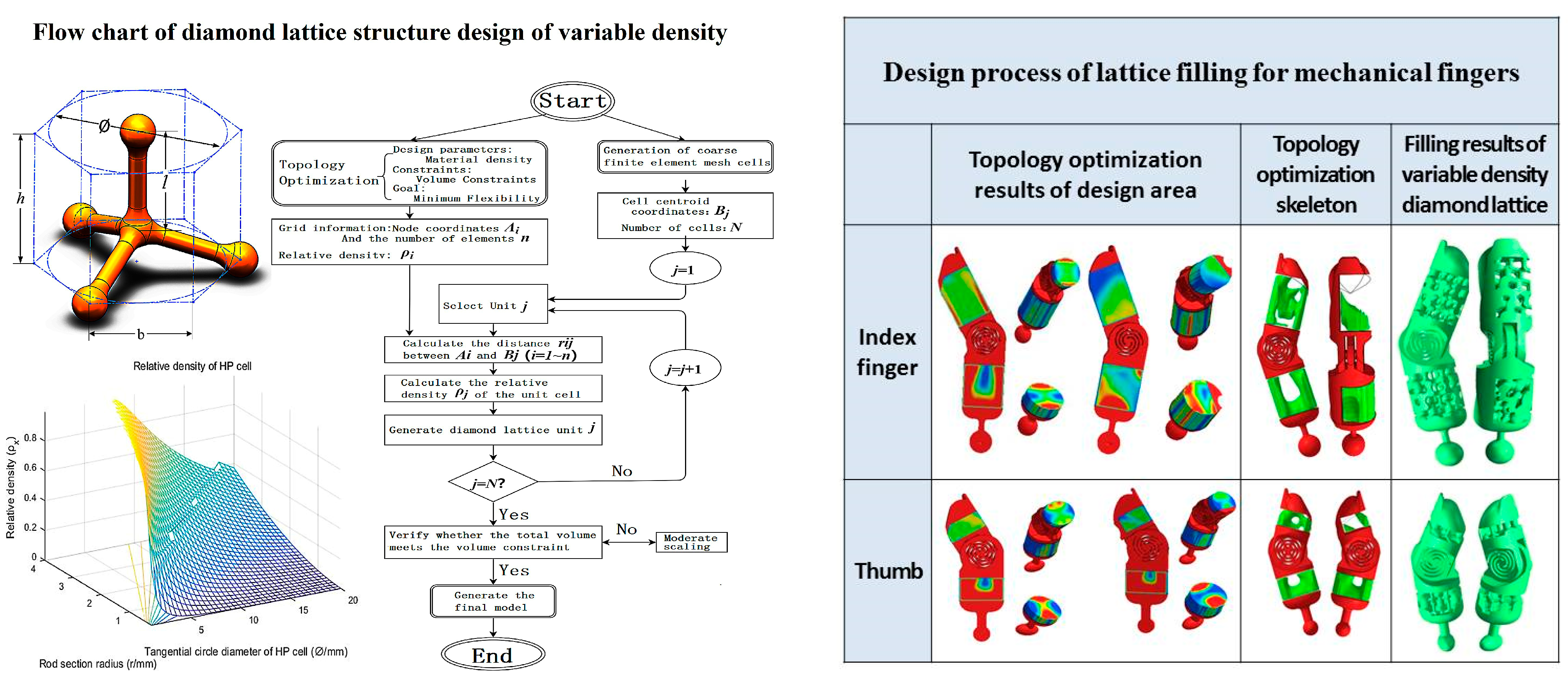 Figure 9 shows the detailed design process of the diamond lattice filling process and variable density lattice filling dactylus.