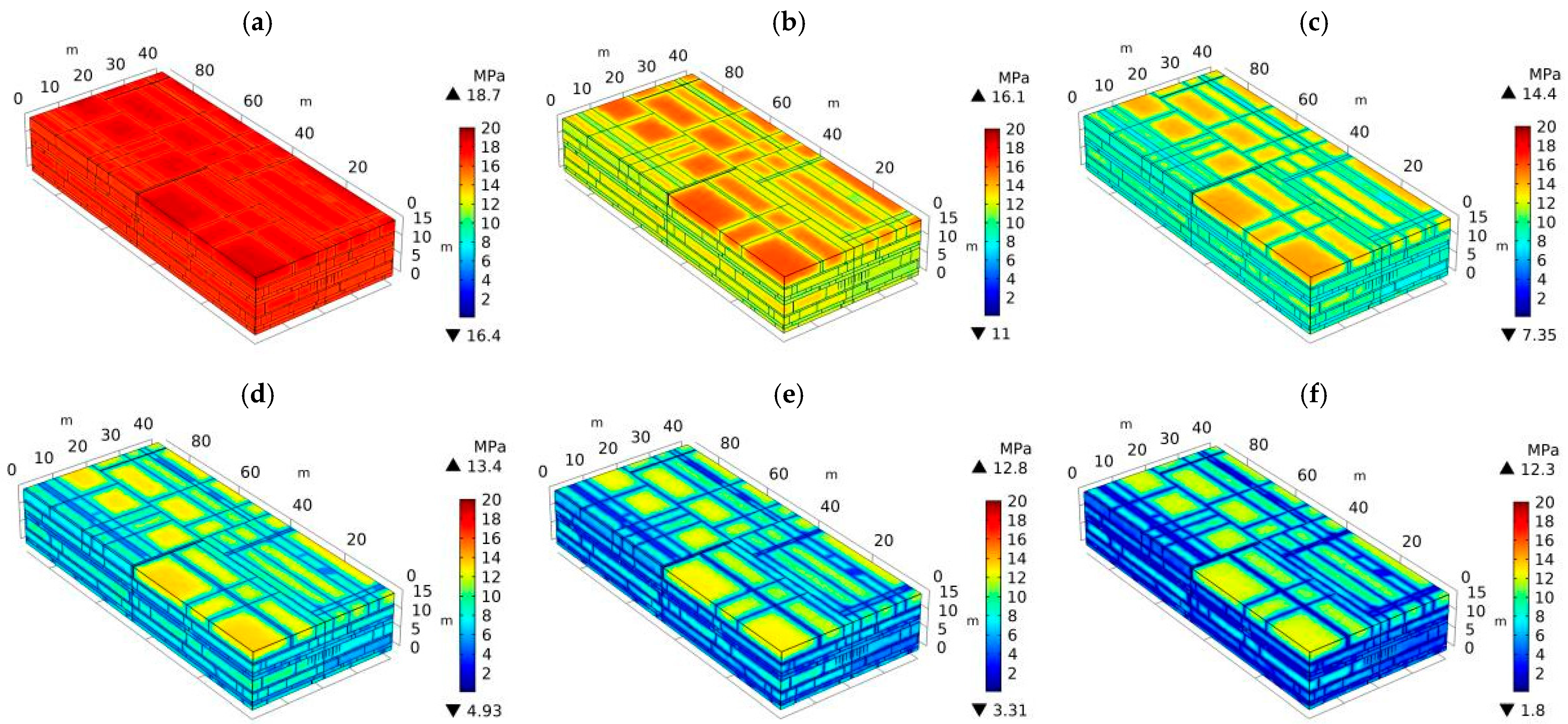 - Qin, L.; Li, J.; Mu, M.; Lv, S.; Chen, N.; Xiong, M. Impact of controllable parameters in hydraulic slotting on stress relief effects around coal seam. Phys. Fluids 2025, 37, 037105. [Google Scholar] [CrossRef]