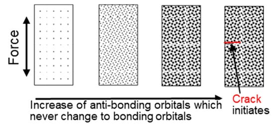 When a certain number of the antibonding orbitals (corresponding to “vacancies” in conventional theory) accumulate and the bonding orbitals that increase strength disappear, the material can no longer sufficiently increase its strength against external forces, and fatigue cracks initiate, propagating planarly owing to the lack of surrounding bonding orbitals, as shown in Figure 14.