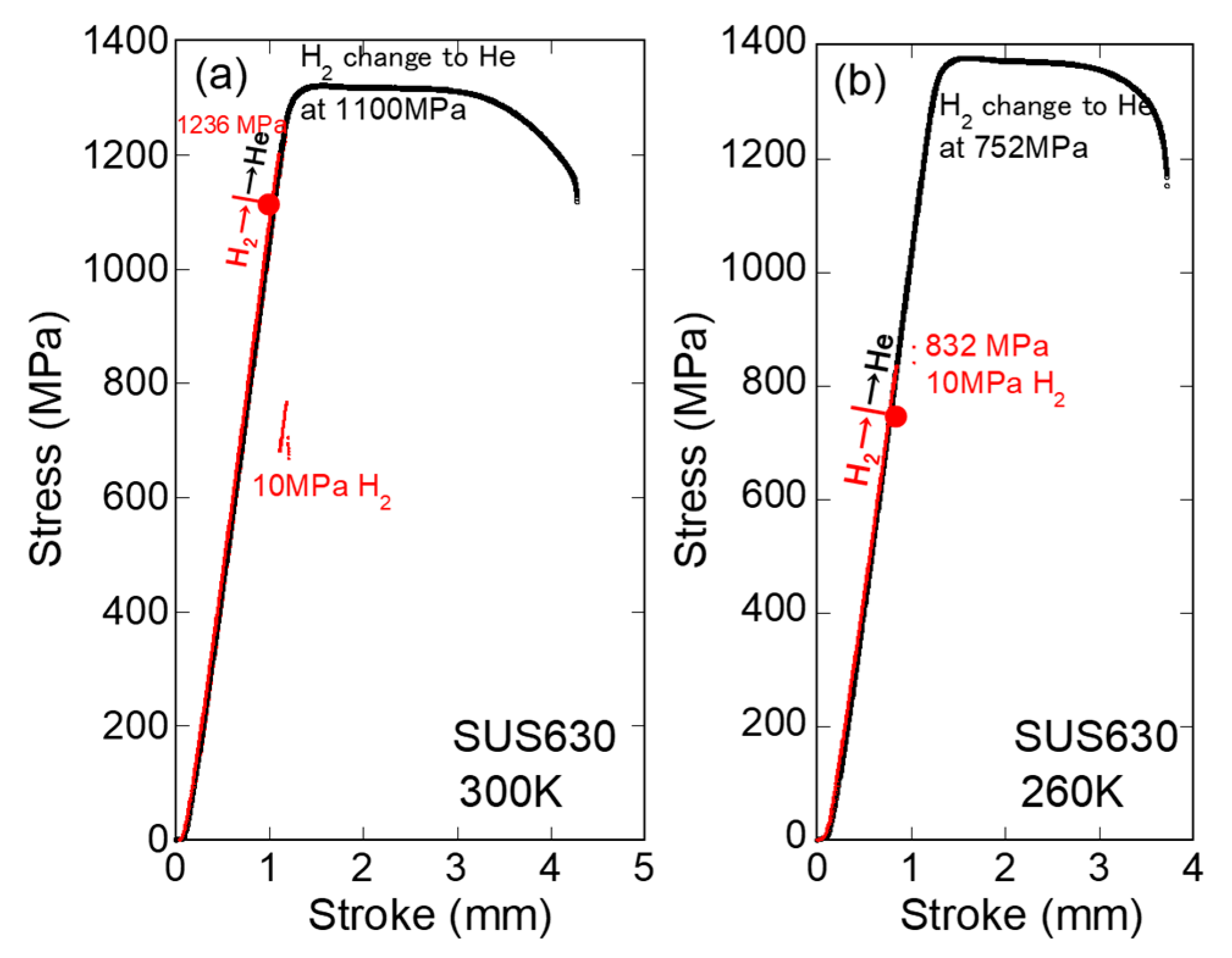 2 environment was instantly removed. For SUS304, SUS316L, and SUS630, even if the pressure is low, the momentary release of H