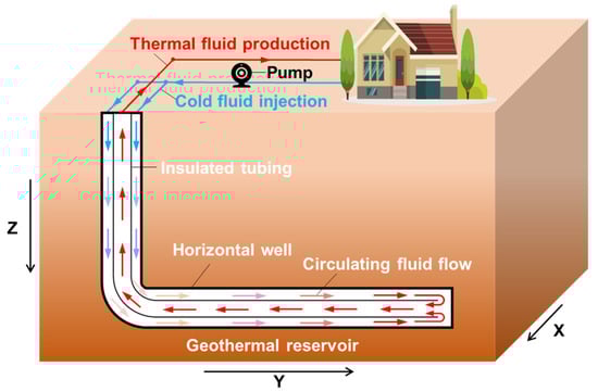 Figure 1. Horizontal well closed-loop geothermal system in hydrothermal reservoirs.
