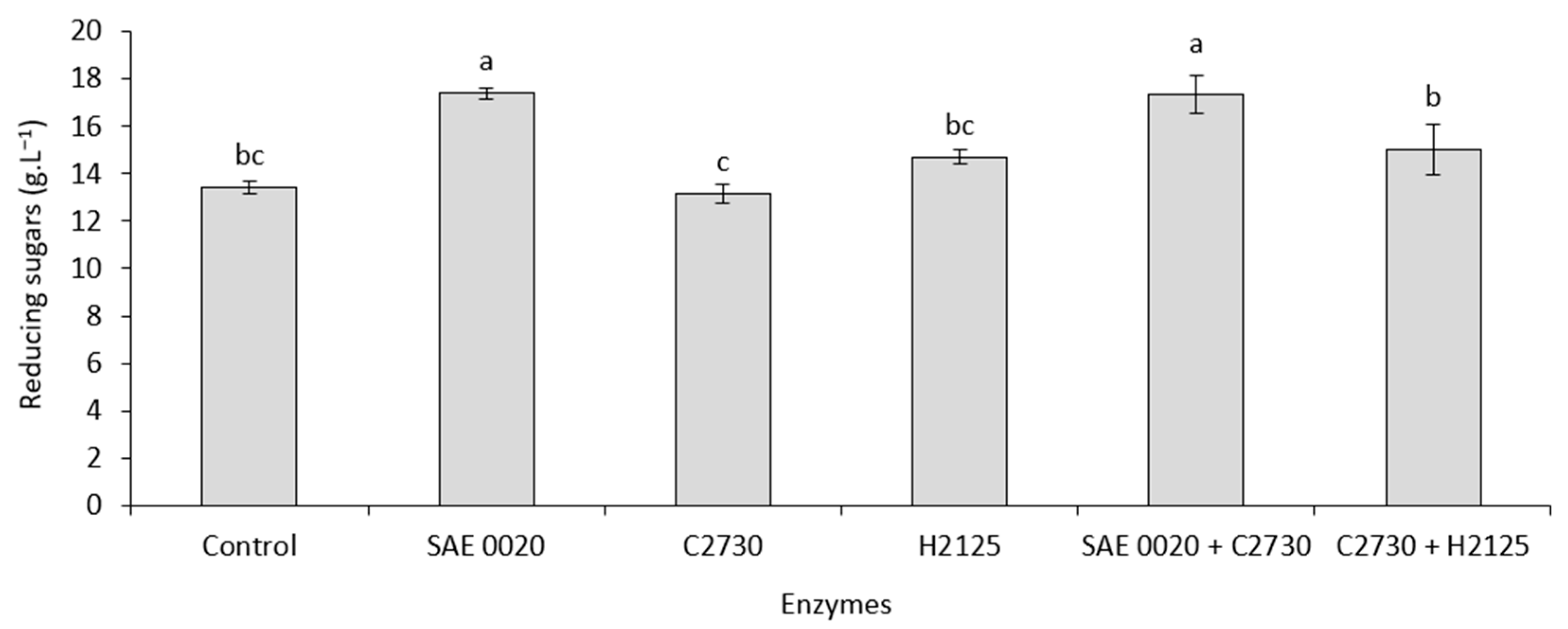2.3.2. Evaluation of Enzymes for the Saccharification of Strawberry Leaves