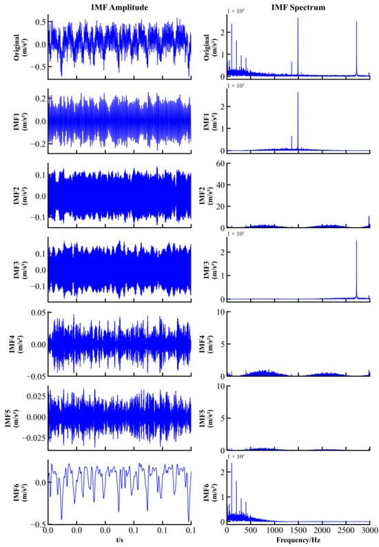 The Variational Mode Decomposition (VMD) algorithm was proposed by Dragomiretskiy et al. [27] in 2014. Different from signal decomposition methods such as Empirical Mode Decomposition (EMD), VMD is an iterative rather than recursive adaptive signal decomposition algorithm [28]. It decomposes the original signal into k Intrinsic Mode Functions (IMF) with specific central frequencies by solving variational problems.