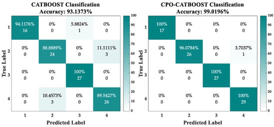 Confusion Matrix Comparison of CATBOOST and CATBOOST-CPO Classification Results.