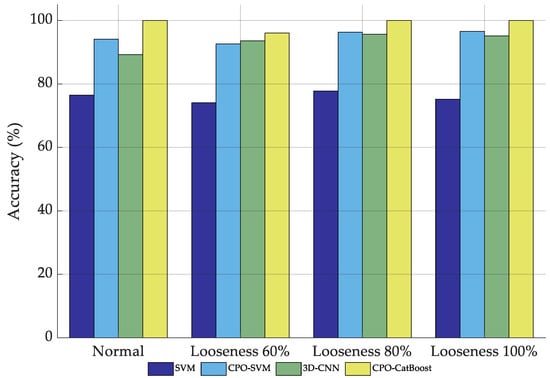 Fault Recognition Accuracy of Four CPO-CatBoost Algorithm Configurations Under Different Loosening States of Transformer Cores.