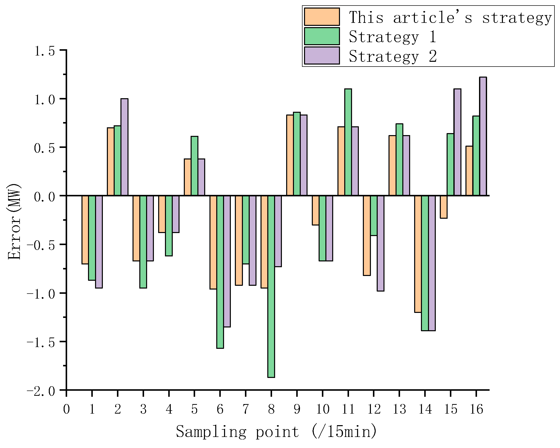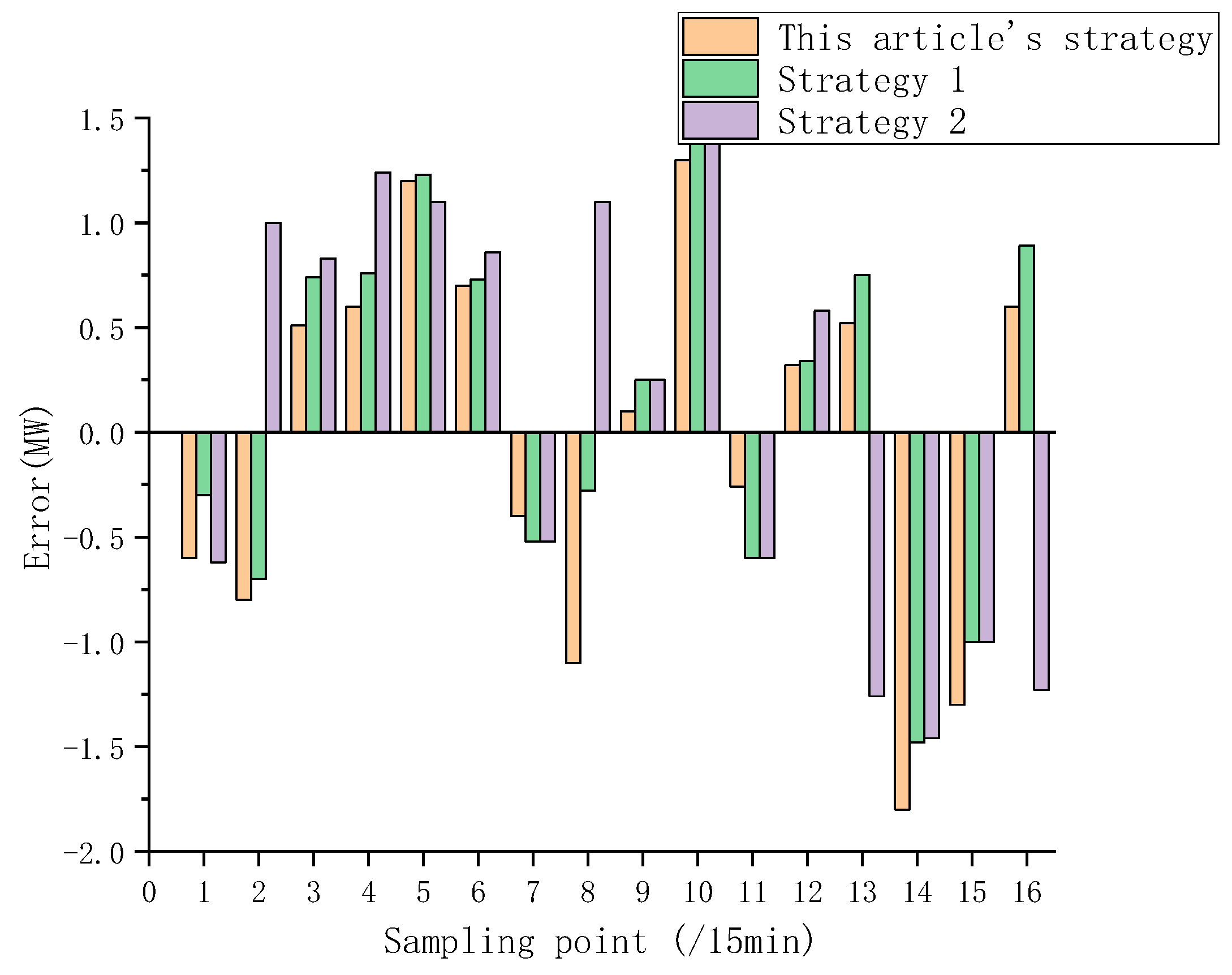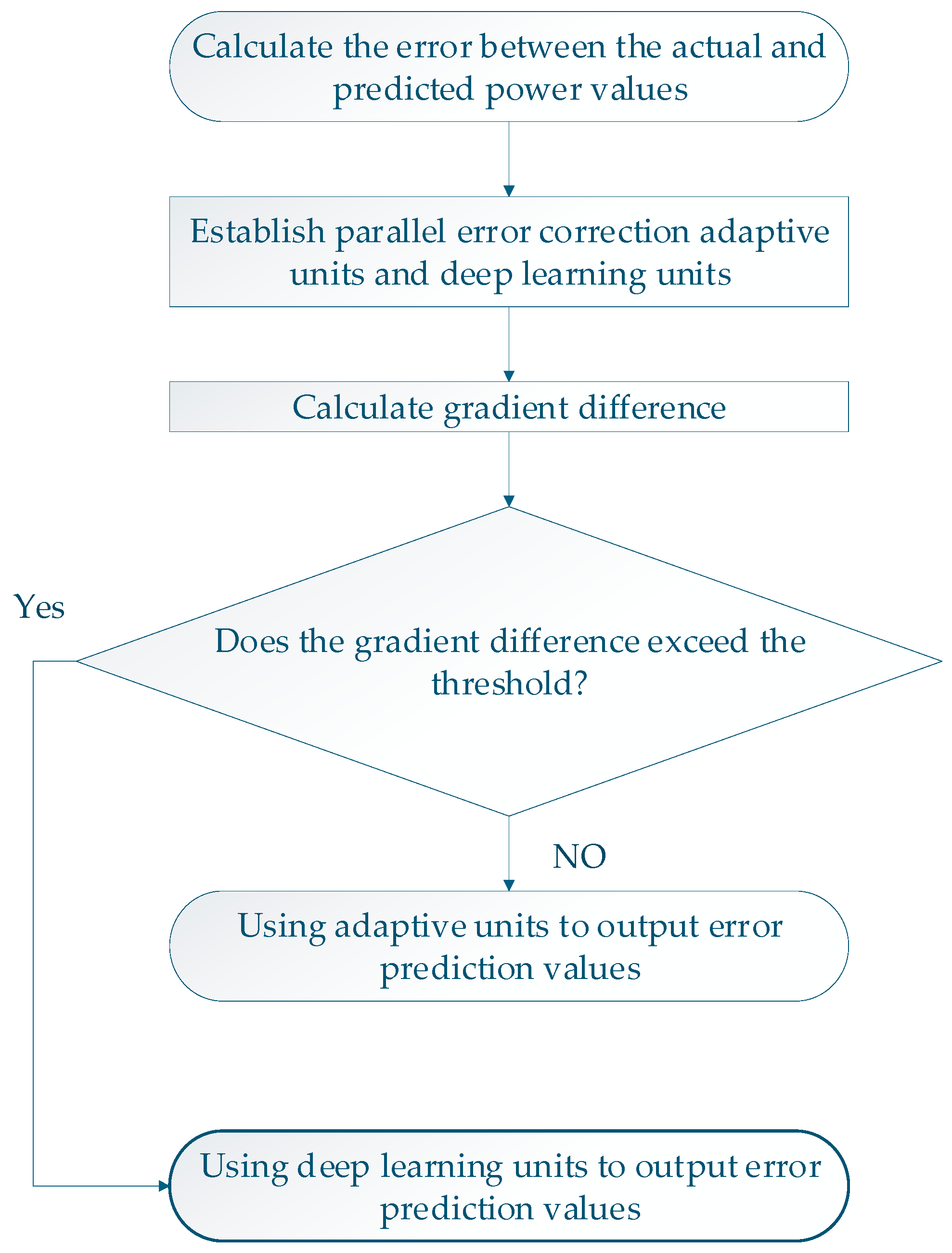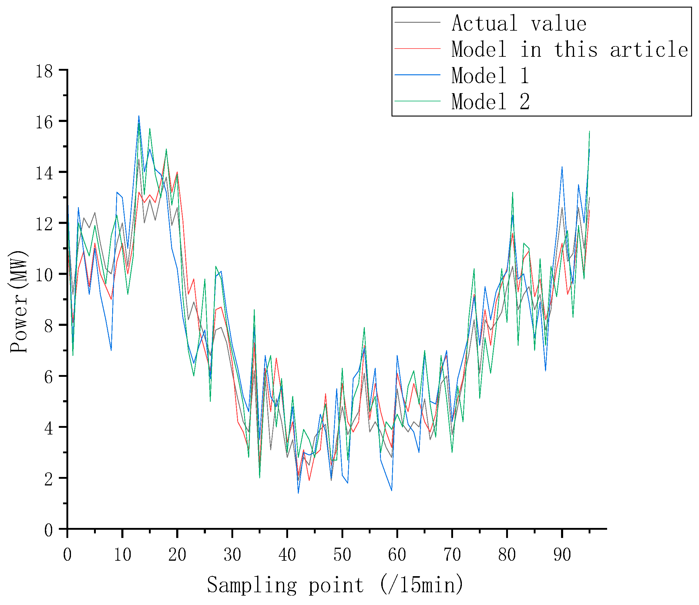 - In order to solve the error caused by the decline in the generalization of the model under strong disturbance, according to the nonlinear correlation between the wind speed, wind direction data, and the instantaneous prediction error, a matrix gradient error correction unit about wind speed and a deep learning error correction unit based on the physical constraints of the prediction error were constructed, and combined with the adaptive selection strategy of the matrix gradient difference, the ability of the model to overcome the ultra-short-term instantaneous prediction error of wind power was further improved.