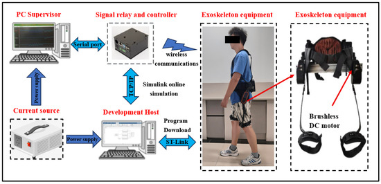 With the aging population and an increasing demand for rehabilitation medicine, lower-limb exoskeleton robots [1,2,3] have become a pivotal technology for facilitating assisted movement. These devices exhibit considerable value in applications such as elderly care, disability assistance, rehabilitation training, and military enhancement. The hip joint [4,5], serving as the primary power source for lower-limb movement in the human body, significantly affects the coordination between the exoskeleton system and the wearer through its precision of movement. Notably, during the human walking gait cycle, the hip joint serves as the primary contributor to the total propulsive force, playing a dominant role in lower-limb dynamics [6]. Excessive deviations from the intended movement trajectory can result in elevated energy expenditure during gait and may contribute to compensatory injuries. Within the realm of rehabilitation medicine, the accurate tracking of hip joint trajectories is essential to prevent the entrenchment of abnormal gait patterns and facilitate the restoration of neuromuscular control. For instance, Arhos et al. [7] enhanced hip joint movement trajectories through task-specific training, yielding improved knee-hip joint coordination patterns in patients with patellofemoral pain, thus indirectly bolstering the relevance of trajectory tracking for neuromuscular control restoration. Nonetheless, human gait is characterized by its highly nonlinear and time-varying nature. Consequently, exoskeletons must confront several challenges in practical applications including the system’s inherent high nonlinearity and time-varying characteristics as well as variations among individual wearers, external environmental disturbances, and fluctuations in dynamic load conditions. These challenges impose stringent requirements on the control of hip joint trajectory tracking. Therefore, the development of effective trajectory tracking control methods [8,9,10,11], tailored to meet the rehabilitation training needs of patients with lower limb movement disorders, is of considerable research significance.