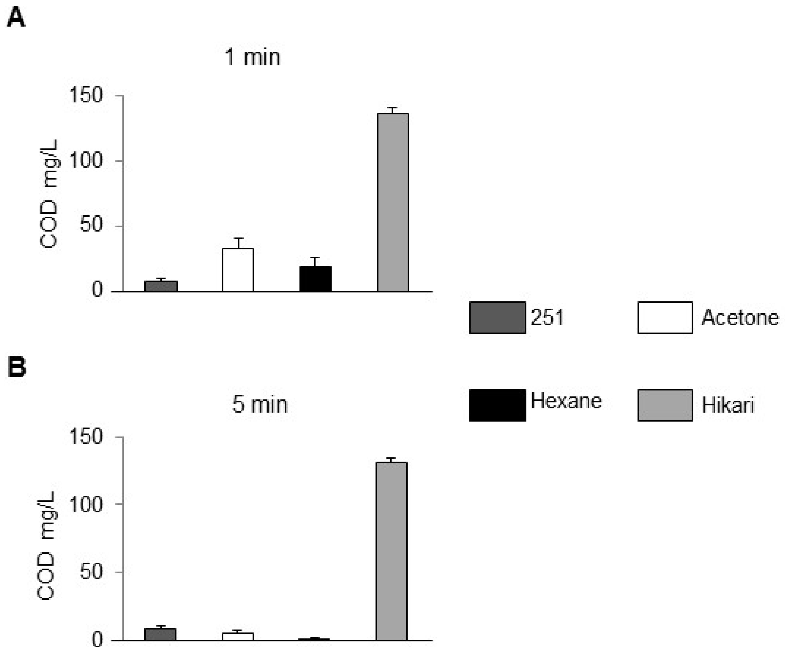 COD was quantified by the permanganate digestion method prescribed in JIS K 0102-2016 [