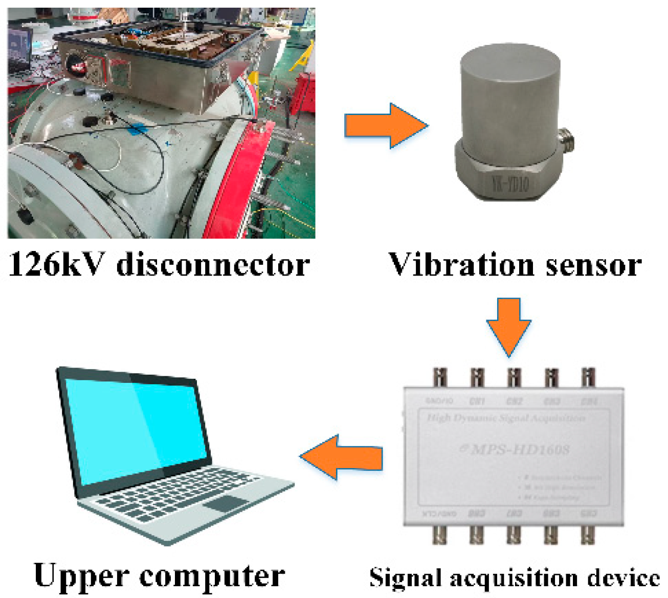 - Feng, J.; Sun, L.; Chen, W.; Su, Y.; Shu, Y.; Zhao, L. Vibration Characteristics of GIS Isolating Switch under Different Operating Conditions. High Volt. Eng. 2021, 47, 4314–4322. [Google Scholar]