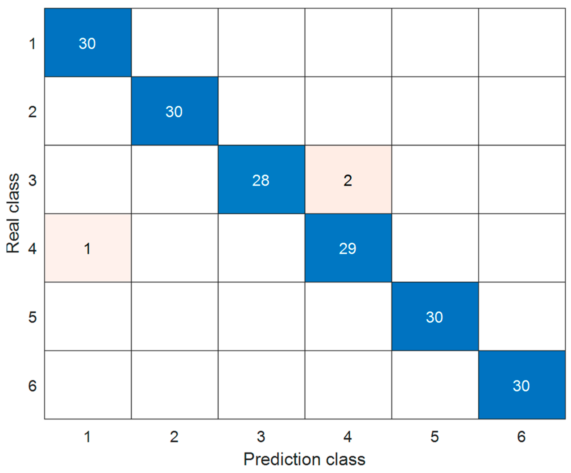 Accuracy (%) | 98.33 | 90.00 | 93.33 | 92.78 | 95.56 | 96.67 | 96.11 |