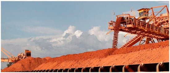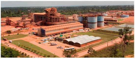 - Norsk Hydro ASA. Paragominas Mine: Start-Up of Production: 2007; Nominal Capacity: 9.9 Mt; Production: 11.4 Mt/y. Available online: https://www.hydro.com/en/global/about-hydro/hydro-worldwide/americas/brazil/paragominas/paragominas-mine/ (accessed on 23 September 2025).