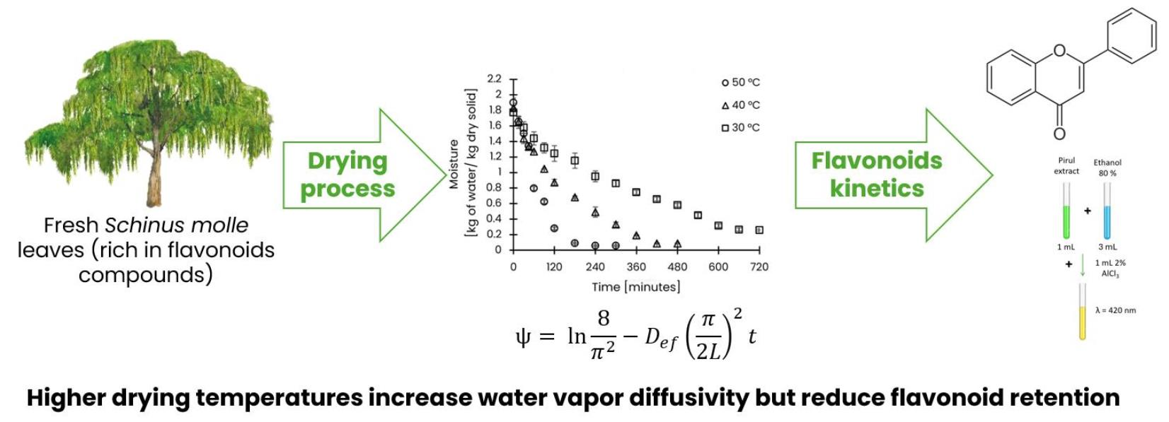 Convective Drying of Pirul (Schinus molle) Leaves: Kinetic Modeling of Water Vapor and Bioactive Compound Retention