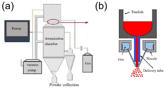 The structure and working principle of metal atomization equipment. (a) The structure of atomization equipment. (b) The principle of atomization equipment.