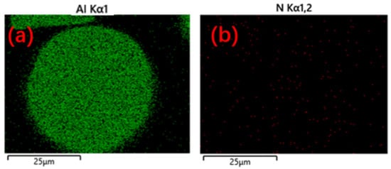 EDS analysis of aluminum powder. (a) Distribution of aluminum; (b) Distribution of N.