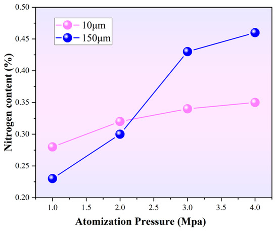 - The nitrogen content in the powder increases with increasing pressure in the atomization chamber. High gas pressure can effectively inhibit the nitrogen precipitation behavior.