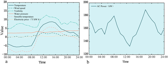 Figure 4. Load input variables in the air conditioning industry: (a) characteristics of air conditioning load influence; (b) typical load of air conditioning.