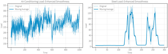 In addition to production loads, office and service departments in steel plants also contribute to electricity demand. These loads are mainly affected by working schedules and typically remain stable, as they are less influenced by production maintenance. When their share in the total consumption is small, they can be regarded as stable background loads. Due to the differences in volatility and seasonality between steel and air conditioning loads, a parallel Transformer-LSTM framework is applied for joint prediction. Steel loads are primarily related to production orders and exhibit relatively stable patterns, although cooling systems within plants show weather-related fluctuations. In contrast, air conditioning loads are strongly weather-driven and highly volatile. By incorporating these heterogeneous features into the joint prediction model, complementary adjustments are achieved without sacrificing accuracy. The Transformer captures global temporal dependencies, while the LSTM focuses on local variations, allowing the model to balance the distinct characteristics of both loads [27,28].