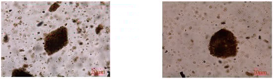 The samples selected in this study were mainly oil shales and marlstone. To separate kerogen from each drill core sample, the sample was first roughed to approximately 0.5 mm, fully leached with hydrochloric and hydrofluoric acid, and then heated with 10% HCl for approximately 2 h (at 80 °C). After cessation of the reaction, the acid solution was centrifuged, drained away, and then washed to neutral with deionized water to thoroughly remove calcium ions in the sample. Subsequently, HCl (10%) and HF (10%) of twice the volume were added, heated at 80 °C, and stirred continuously for 2 h to remove silicates from the sample. Finally, the acid solution was emptied and washed in deionized water until neutral. The acid-treated kerogen was subjected to flotation with a 2.0 g/mL specific gravity solution (HI + KI + Zn), and the flotation products were prepared as slides. The organic matter components and types of microfossils were identified and counted using transmitted light and fluorescence under a binocular biological microscope. After the remaining sample was dried, the elemental content (C, H, O, N, and S) of the kerogen was detected using an EA1110 elemental analyzer.