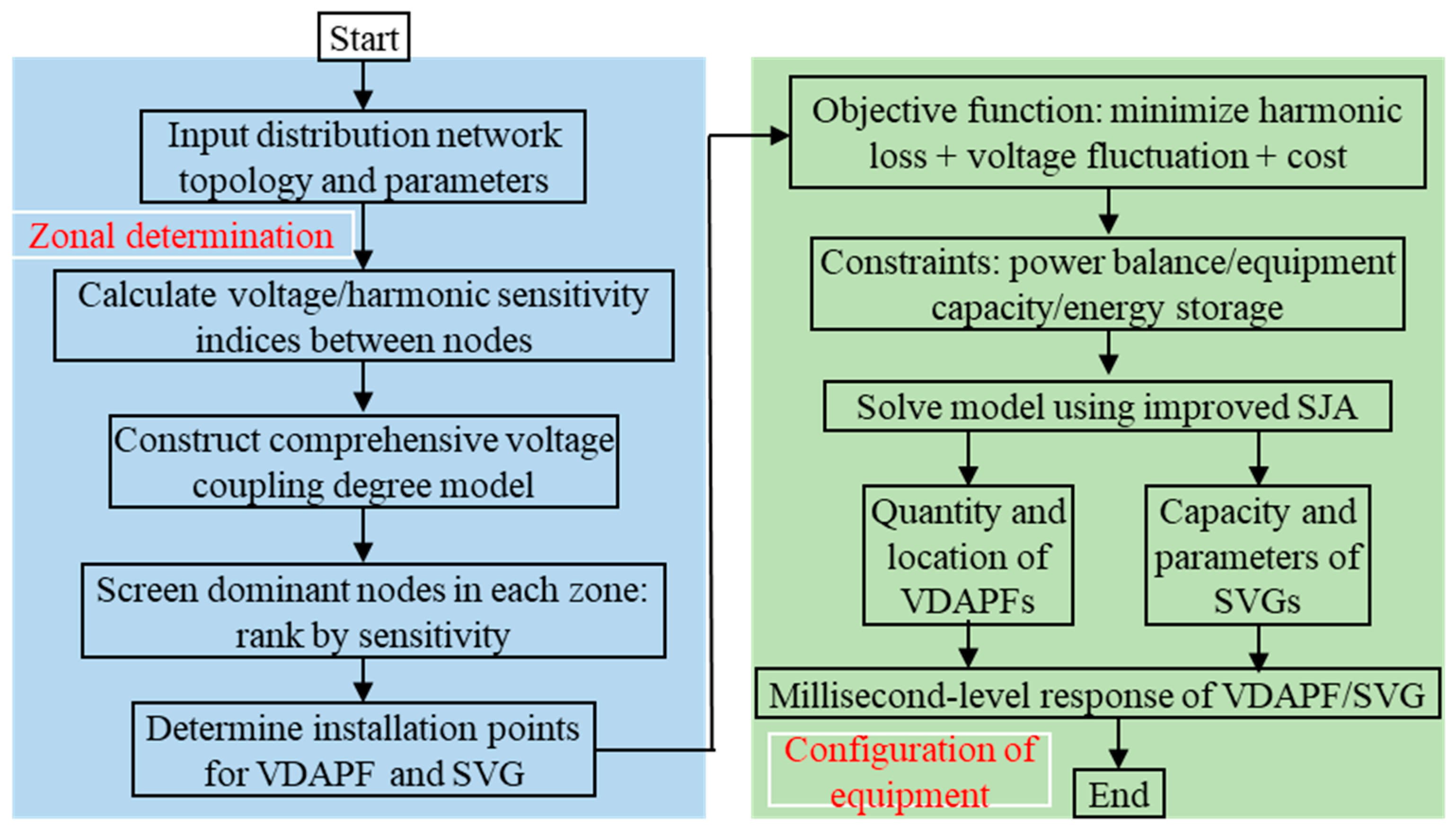 The point-to-point configuration schemes of existing compensation equipment such as SVG and VDAPF require the installation of a large number of devices, significantly increasing installation and operational and maintenance costs. Moreover, these devices exhibit low utilization rates and lack the capability for comprehensive optimization of multiple quality indicators.