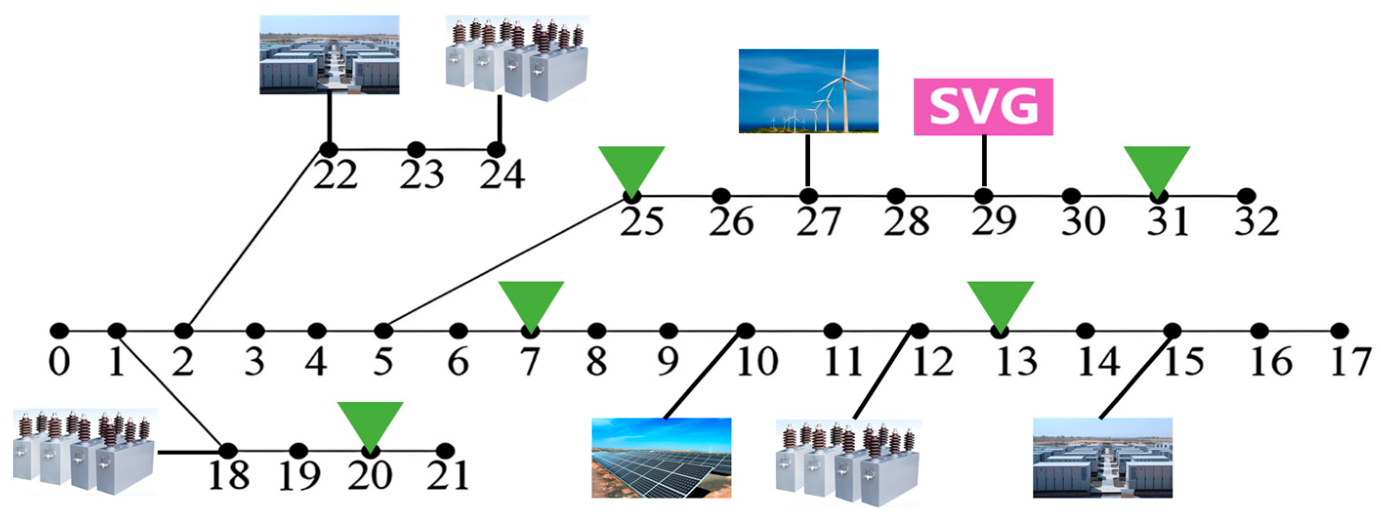 - Chen, S.; Chen, W.; Lin, J.; Chen, L. Modeling and Optimal Operation of Mobile Energy Storage Units Considering the Operation Safety of the Distribution Networks. In Proceedings of the 2024 4th Power System and Green Energy Conference (PSGEC), Shanghai, China, 22–24 August 2024; pp. 1243–1247. [Google Scholar] [CrossRef]