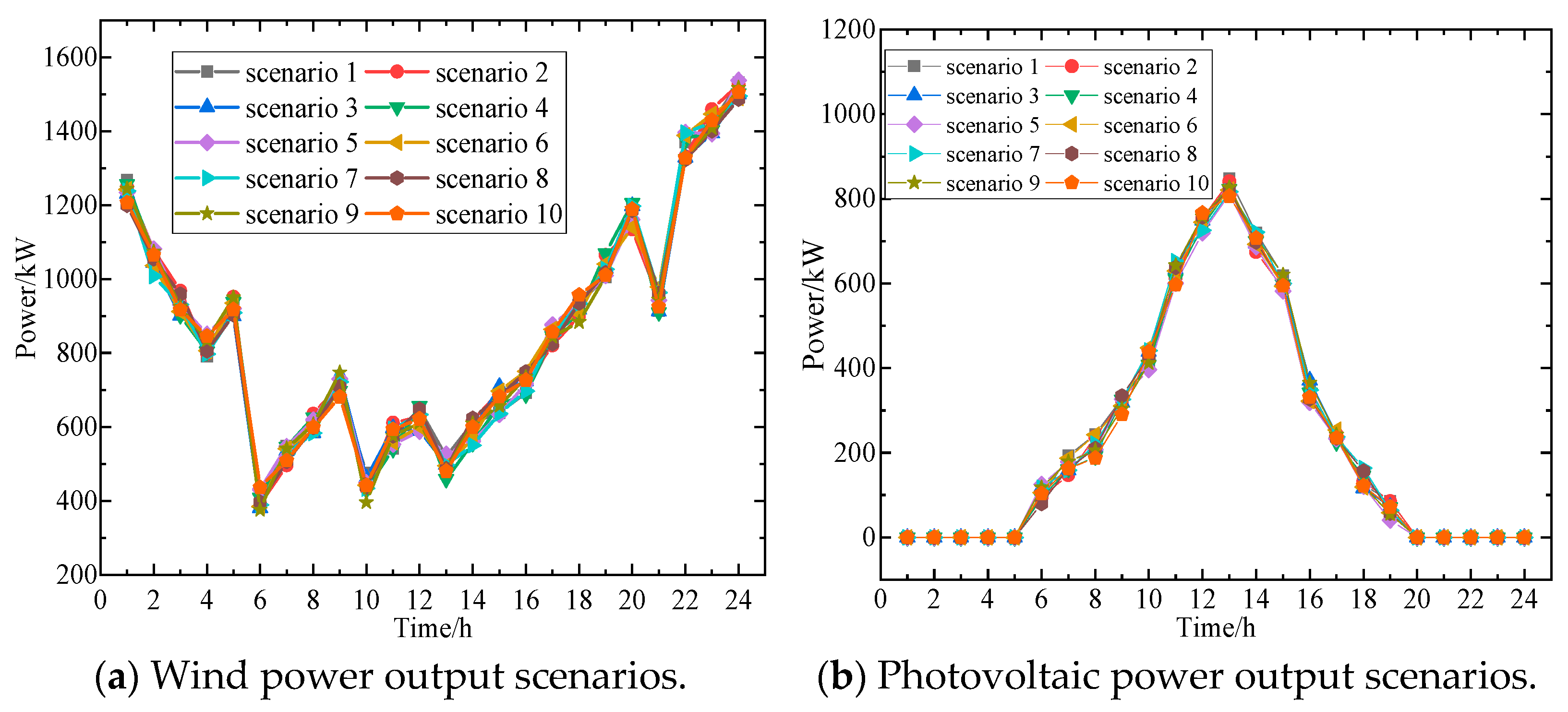 - Scenario 2: Subject to an information attack from 5:00 to 9:00, resulting in a 20% reduction in renewable energy output.