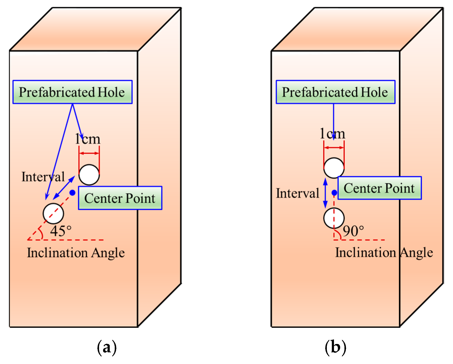 Then, some investigations have demonstrated that stress redistribution around material cavities governs its distinct fracture behaviors. Zhao et al. classified three crack types near cylindrical holes of granite, which were roof–floor tensile cracks, sidewall compressive failures, and peripheral secondary cracks [