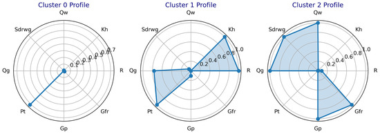 To visually illustrate the characteristic distribution of different gas well types, a radar chart (Figure 10) was constructed. Based on the analysis of Figure 10, the following observations can be made: