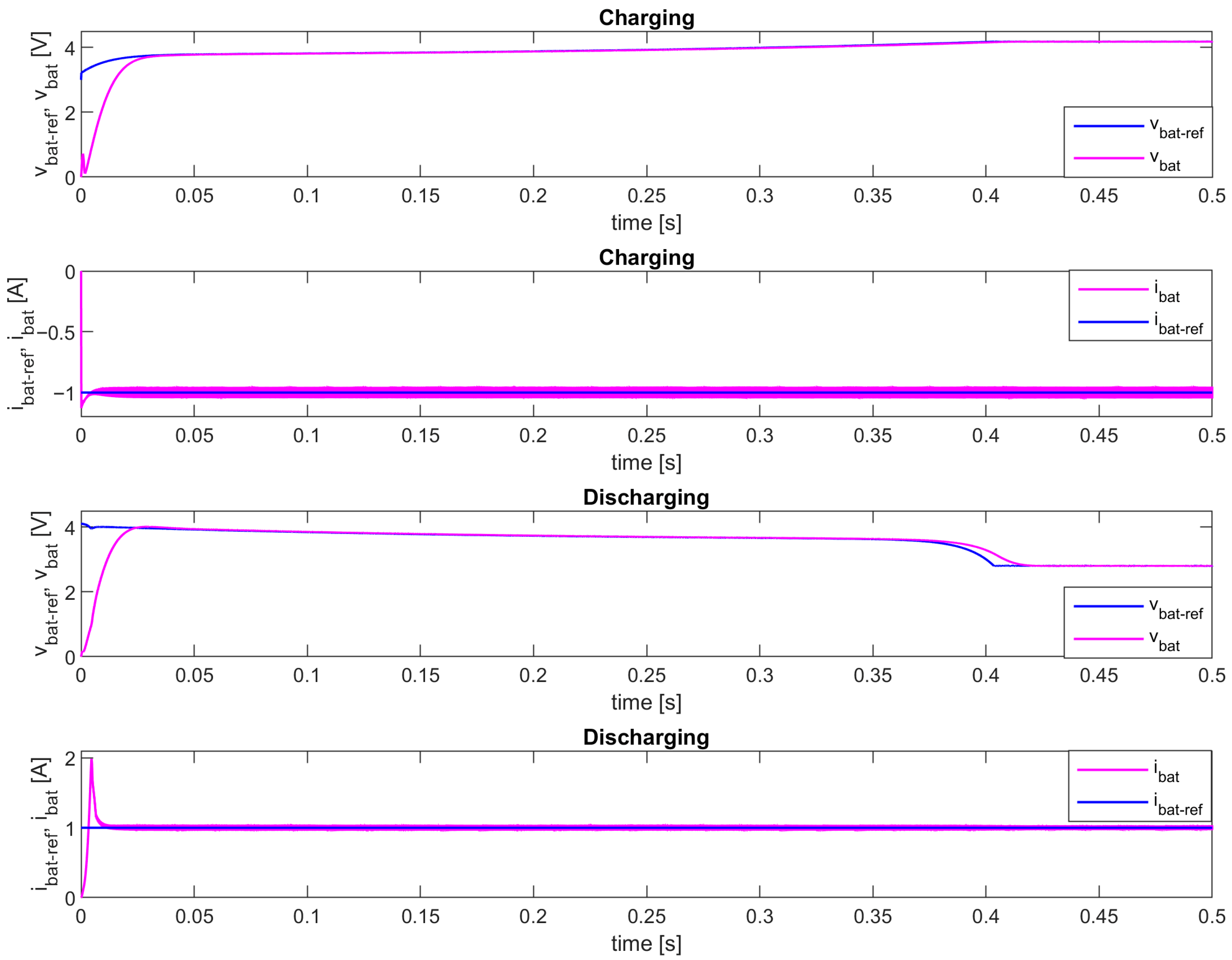- Excellent tracking accuracy and dynamics—the implemented I2DCMC ensures precise and fast tracking of the referent battery voltage and current;