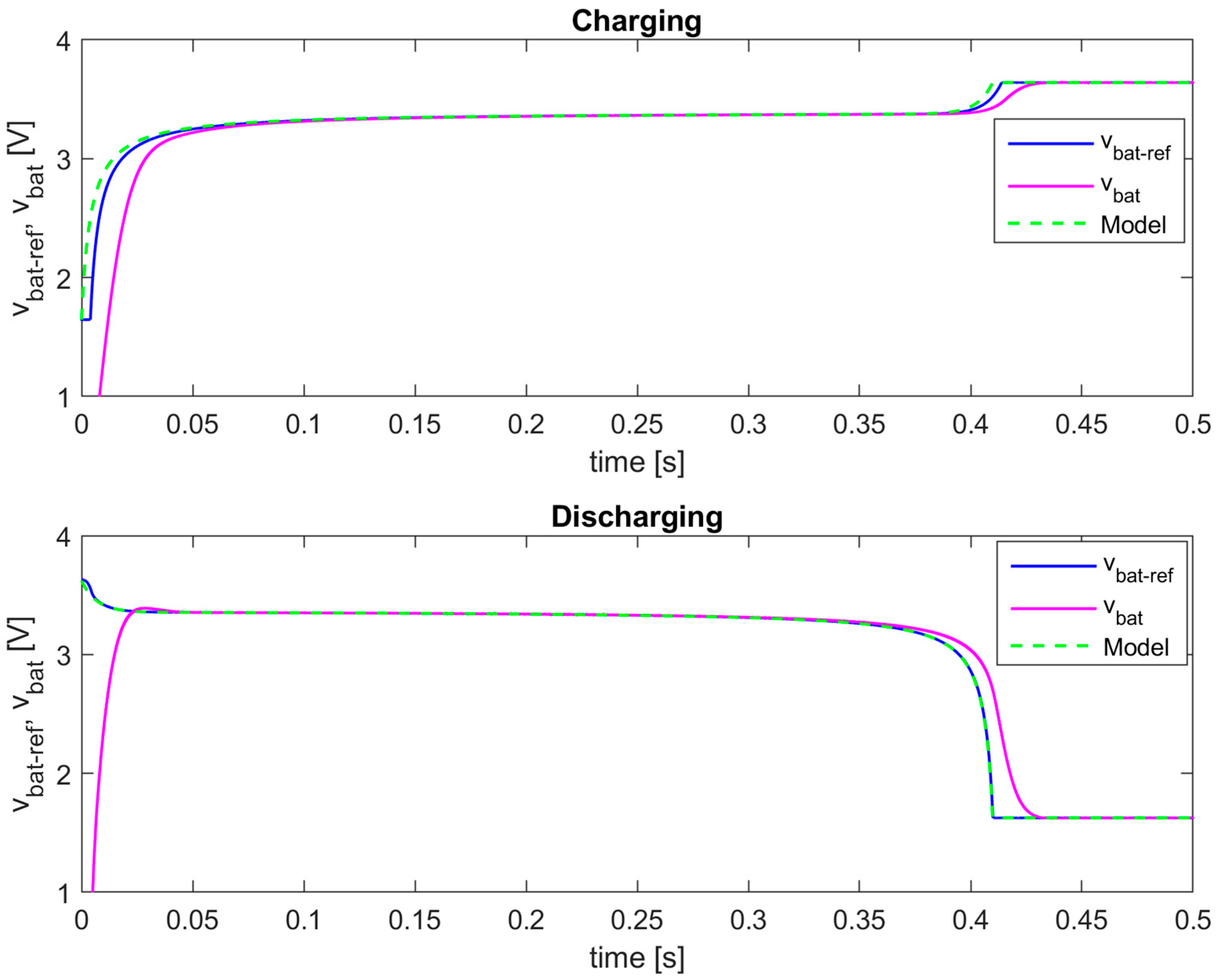 3.3. Simulation Results for the Lead–Acid Battery Model
