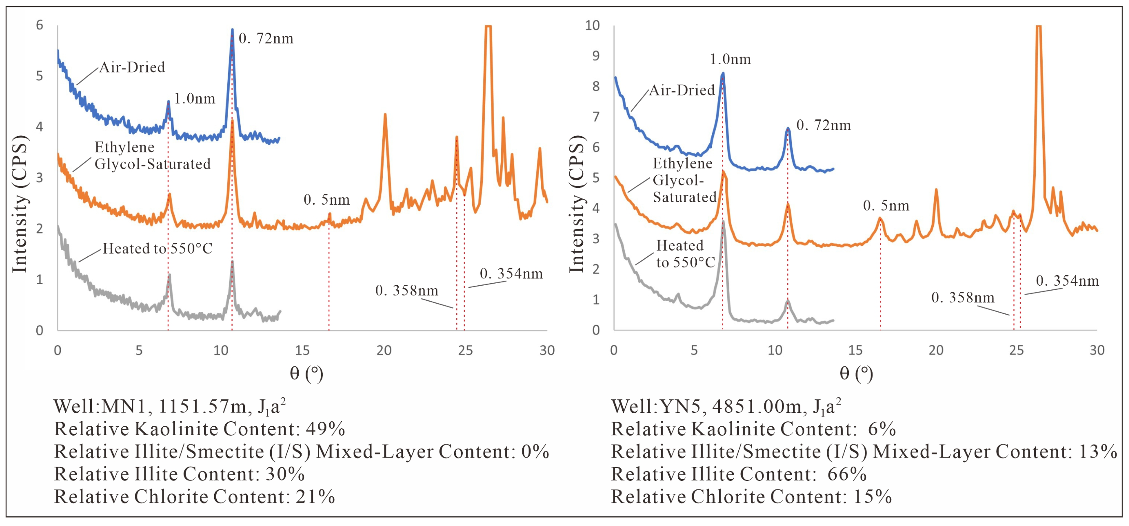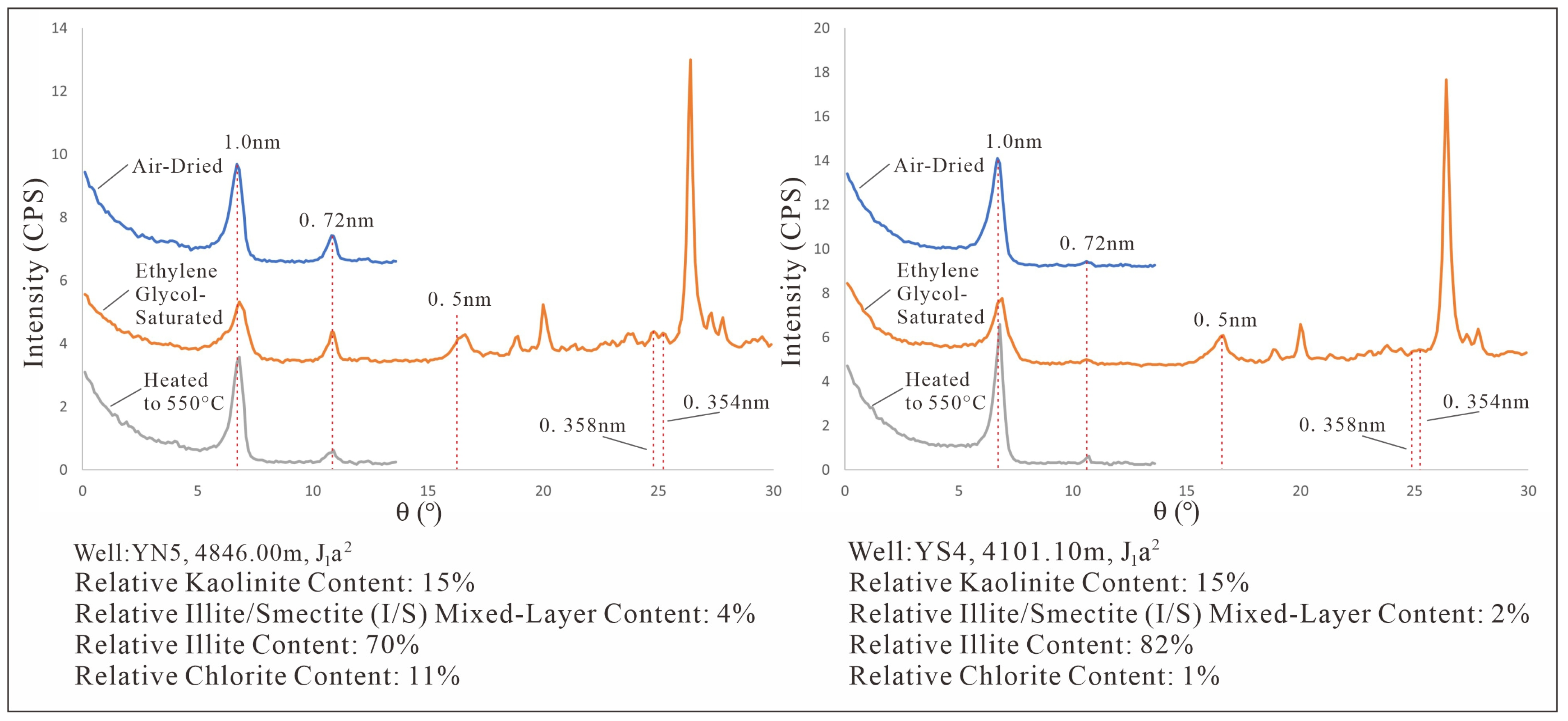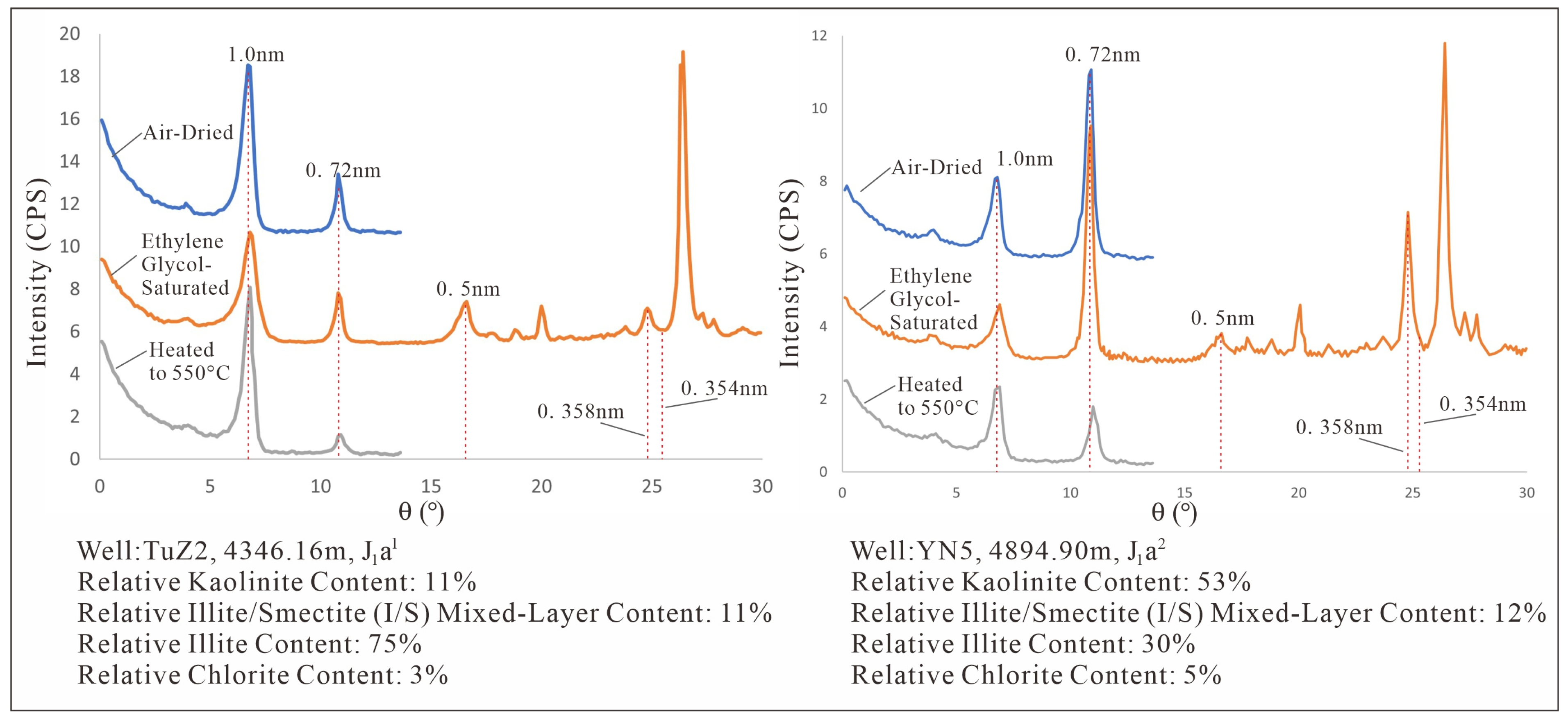 XRD pattern of Illite/Smectite mixed layer in the ZLX Ahe Formation reservoir, Eastern Kuqa Depression.