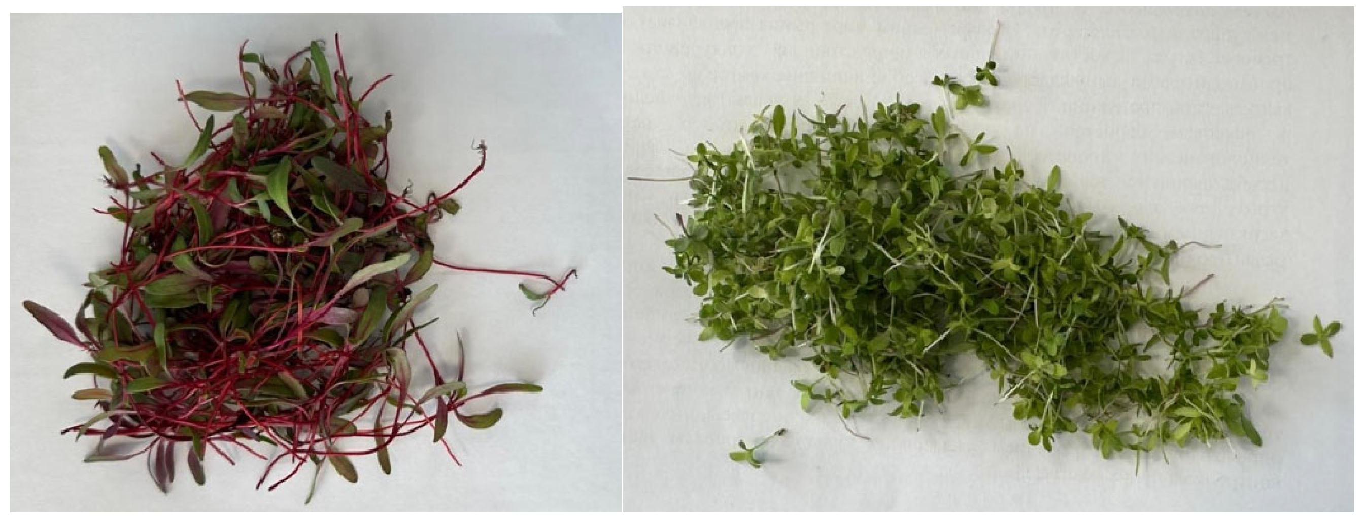 - Wojdyło, A.; Nowicka, P.; Tkacz, K.; Turkiewicz, I.P. Sprouts vs. Microgreens as Novel Functional Foods: Variation of Nutritional and Phytochemical Profiles and Their In vitro Bioactive Properties. Molecules 2020, 25, 4648. [Google Scholar] [CrossRef]