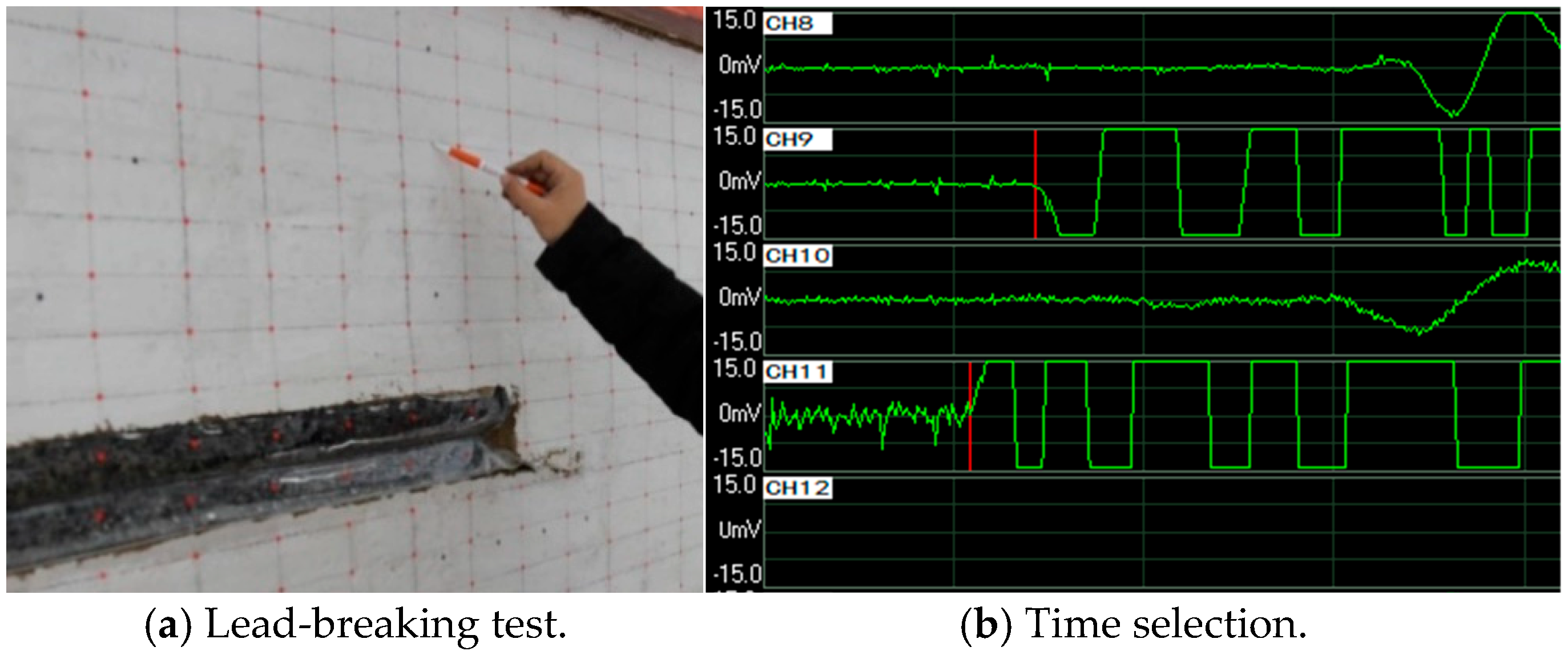 2.5. Calibration of Acoustic Emission Velocity During the Experimental Process
