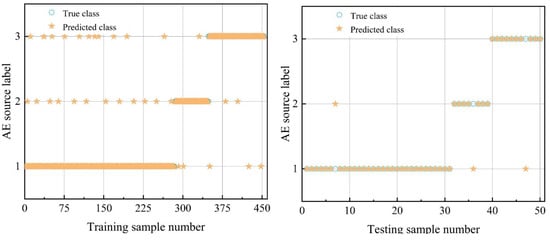 Generally, the larger the penalty factor C, the better the model’s nonlinear fitting ability. However, training time also increases. Moreover, a larger kernel width parameter g can easily lead to underfitting []. Therefore, appropriately determining the penalty factor C and kernel function parameter g is a significant challenge in AE source identification.