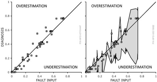 A review of scenarios with no faults also showed no diagnostic results. For the examined scenarios with single faults, there were also no diagnostic outputs as long as there was no fault simulated. This means that the diagnosis system triggered no false alarms, which reinforces confidence in the method’s reliability.