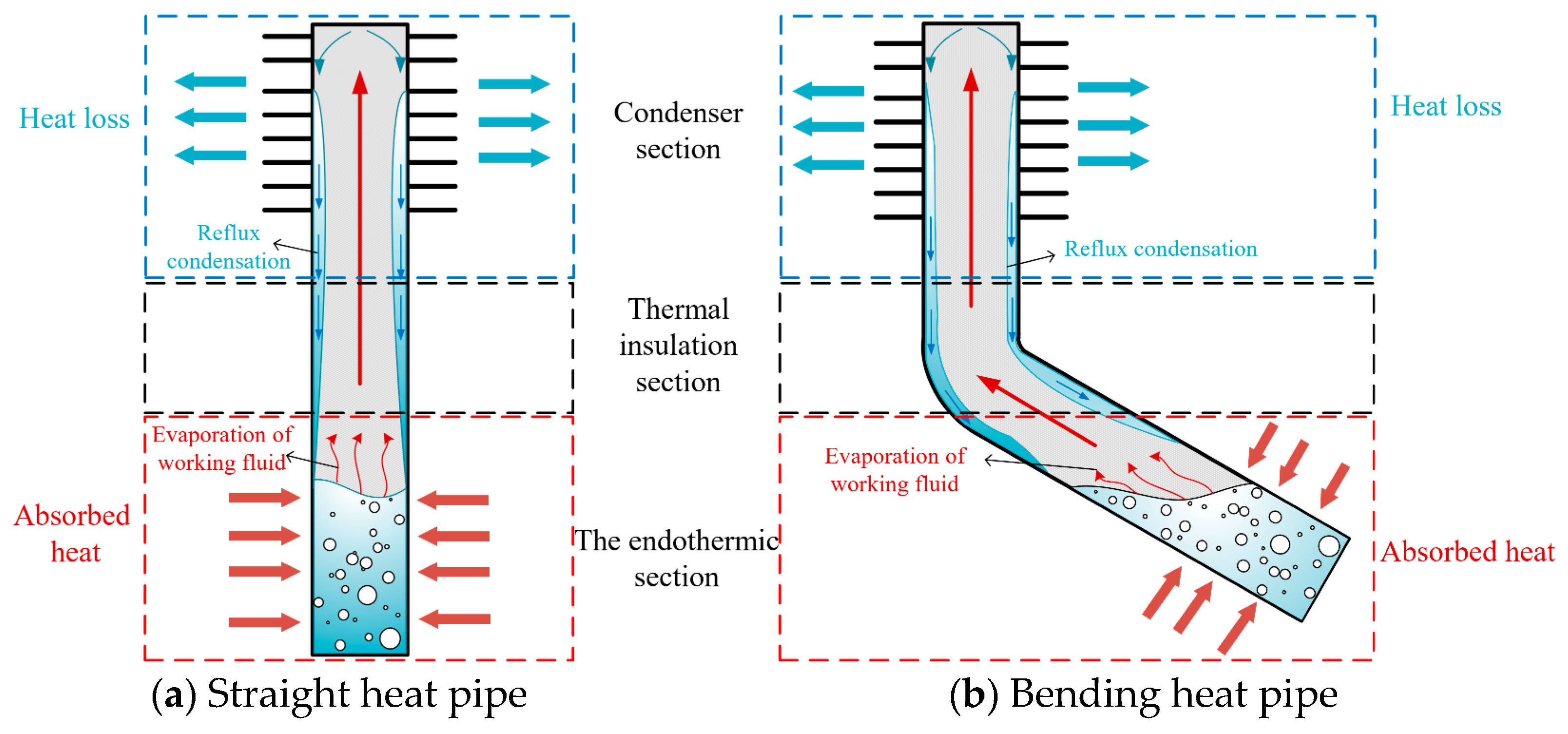 2.1. Analysis of Heat Transfer Principle of Bending Heat Pipe