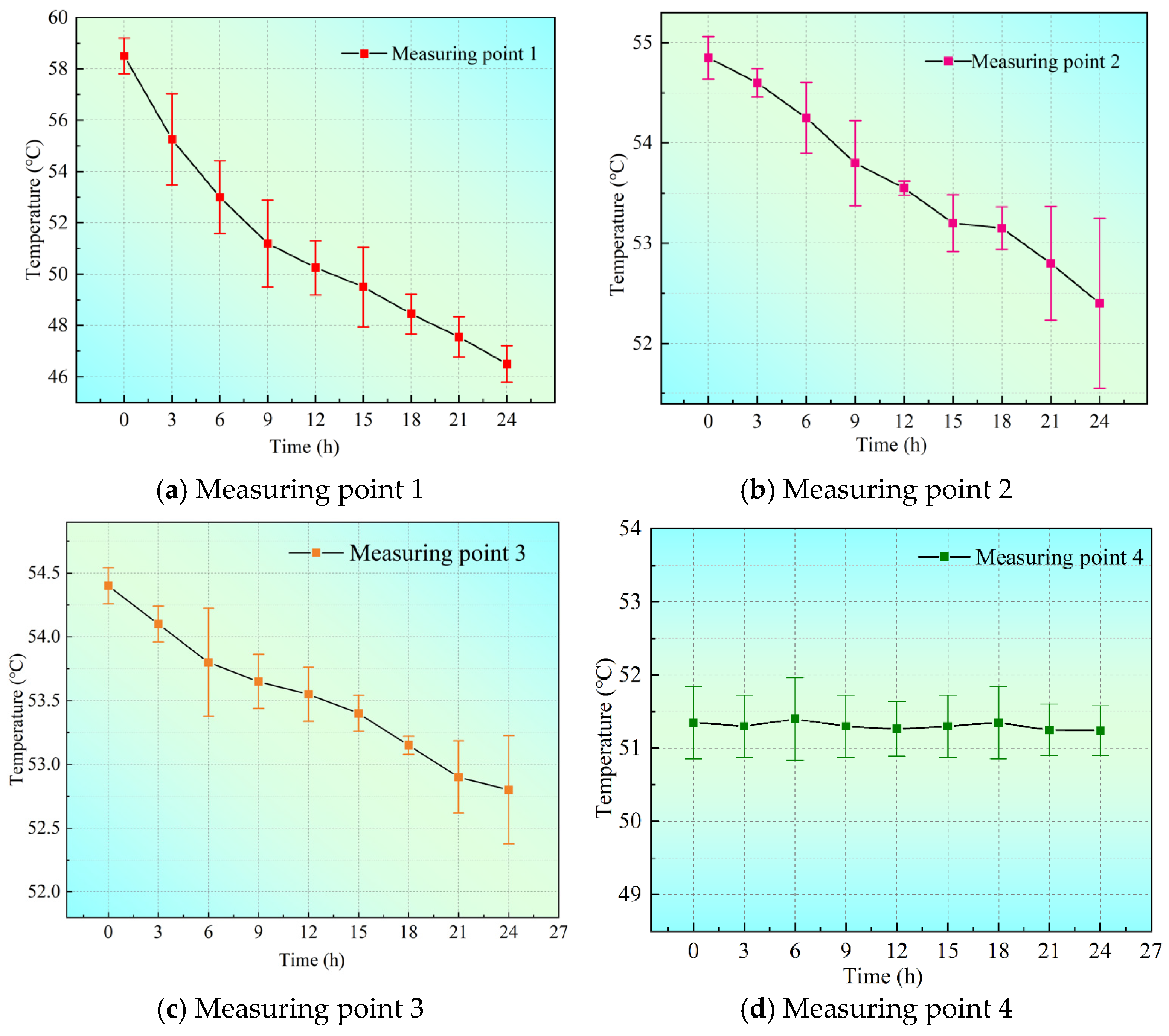 Monitoring Point | Final Temperature of Experiment/°C | Simulated Final Temperature/°C | Absolute Error/°C | Relative Error/% |