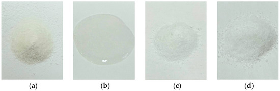 In this study, sodium alpha-olefin sulfonate (AOS) powder (produced by Linyi Yongtai Chemical, Linyi, China, Figure 1a) was employed as the primary foaming agent in the compound system. Alcohol ethoxylate-9 (AEO-9, fatty alcohol polyoxyethylene ether (9), Figure 1b) and cetyltrimethylammonium bromide (CTAB, Figure 1c), also supplied by Linyi Yongtai Chemical, Linyi, China, were used as secondary foaming agents. These three surfactants represent anionic, nonionic, and cationic types, respectively. In addition, partially hydrolyzed polyacrylamide (HPAM, produced by Linyi Yongtai Chemical, Linyi, China, Figure 1d) was applied as a foam stabilizer.