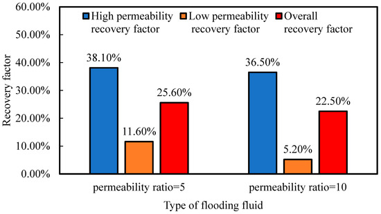 Comparison of oil recovery for foam flooding under different permeability ratios.