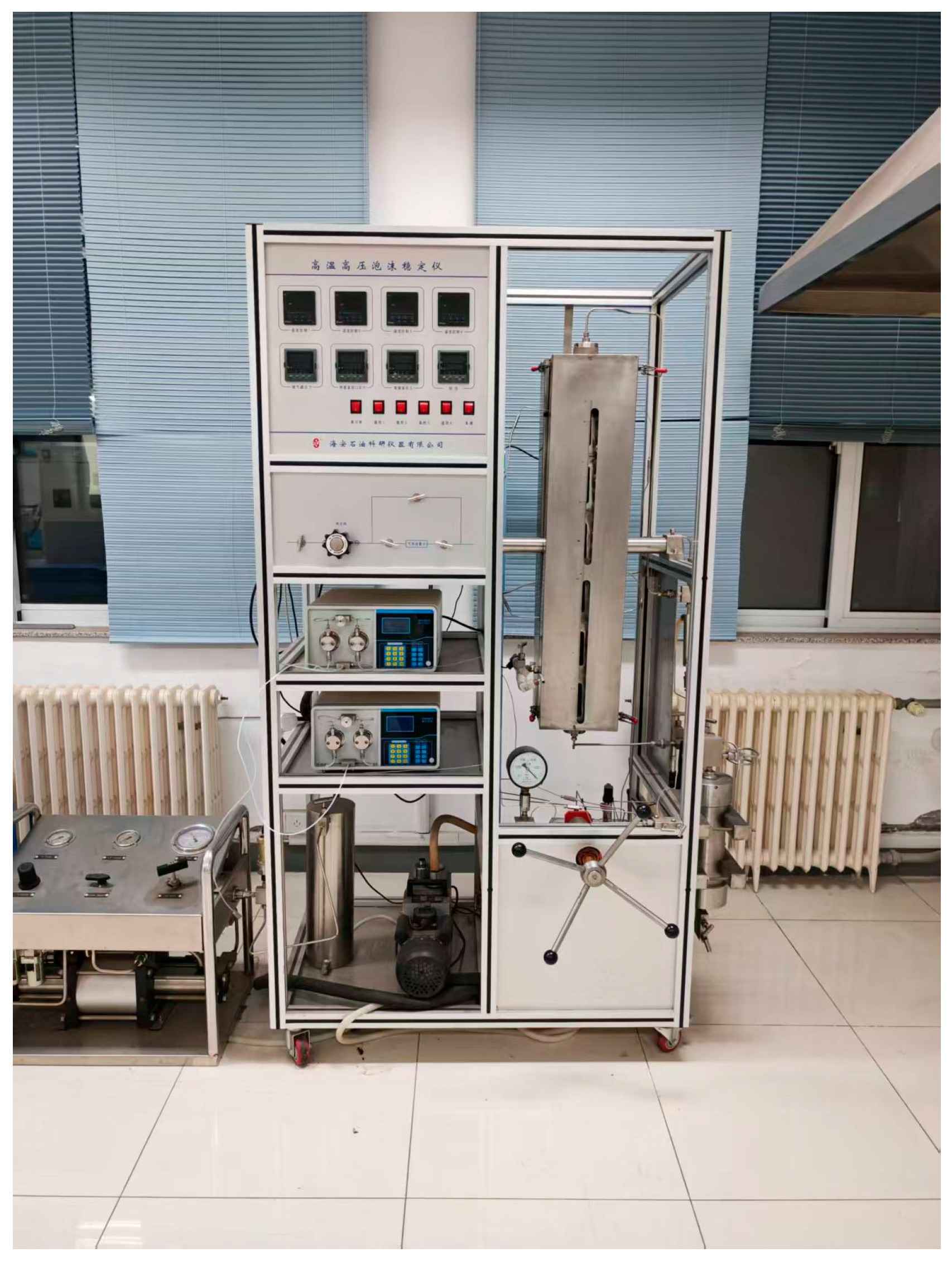 - System saturation with crude oil: Open the valves connecting the intermediate crude oil container to the experimental lines. Pump crude oil at a constant pressure of 5 MPa to fill the system and reach the target pressure. Once the outlet pressure reaches 5 MPa, indicating the system is fully saturated, close the relevant valves;