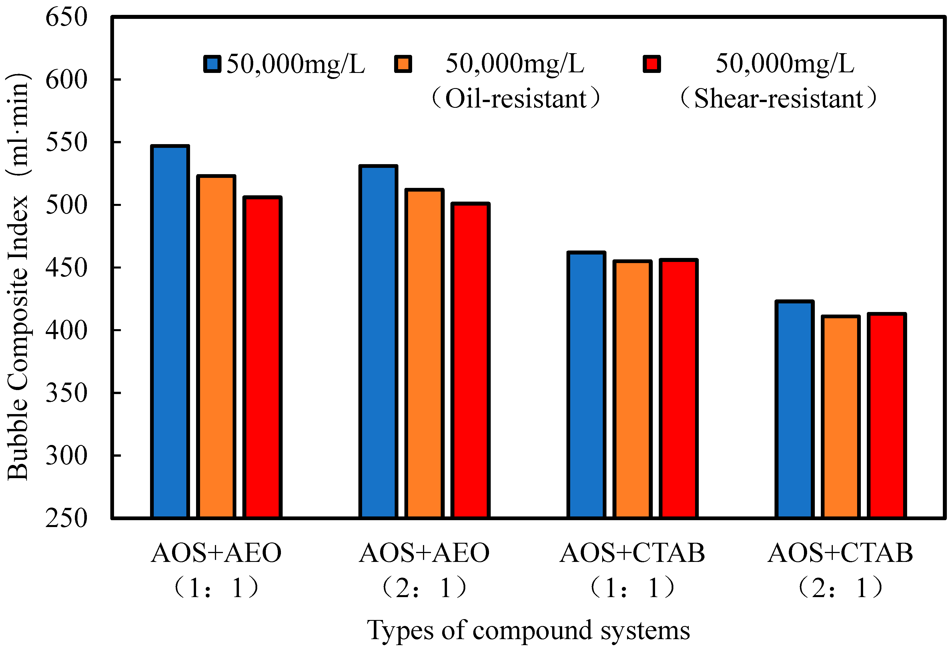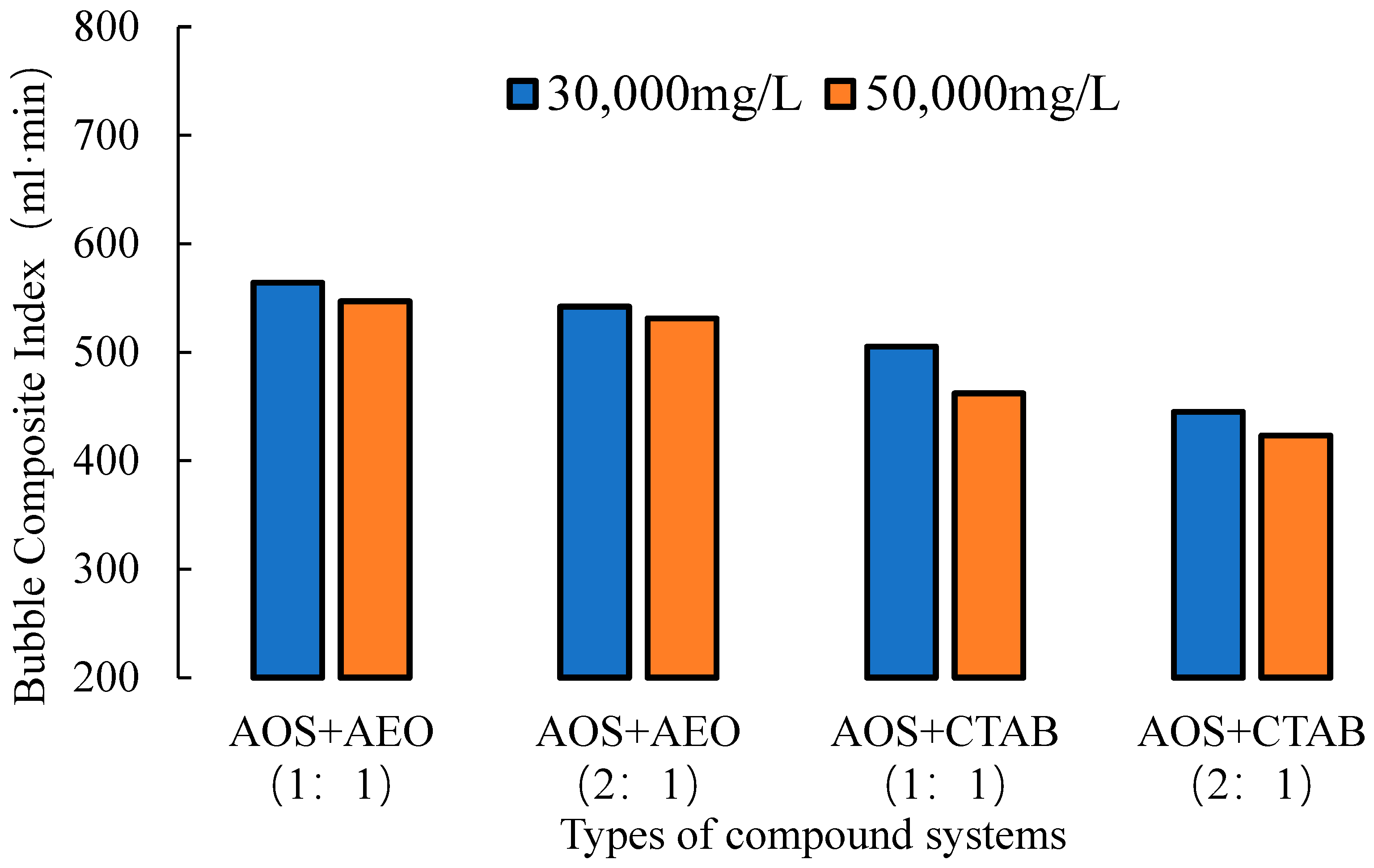 1 | AOS+AEO | 1:1 | 30,000 | HPAM (0.05%) | NO | Evaluation based on the foam composite index |